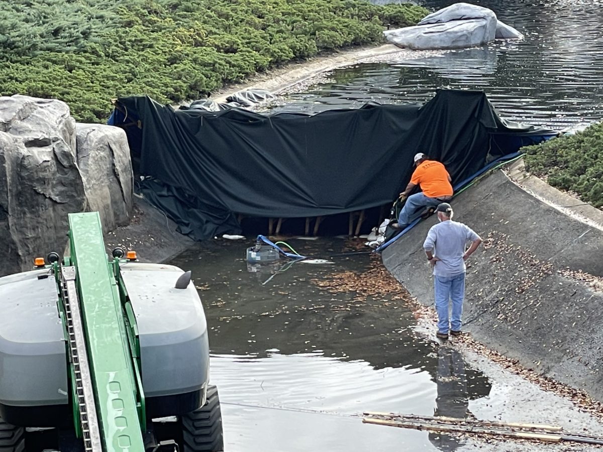 Workers seemed more concerned with the extra water on the dry side of the dam. Well, you can’t blame them as that equipment isn’t quite made for underwater use.