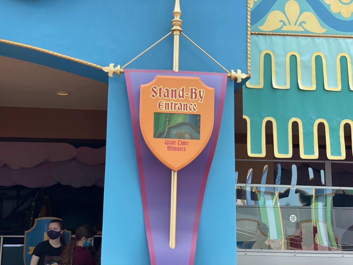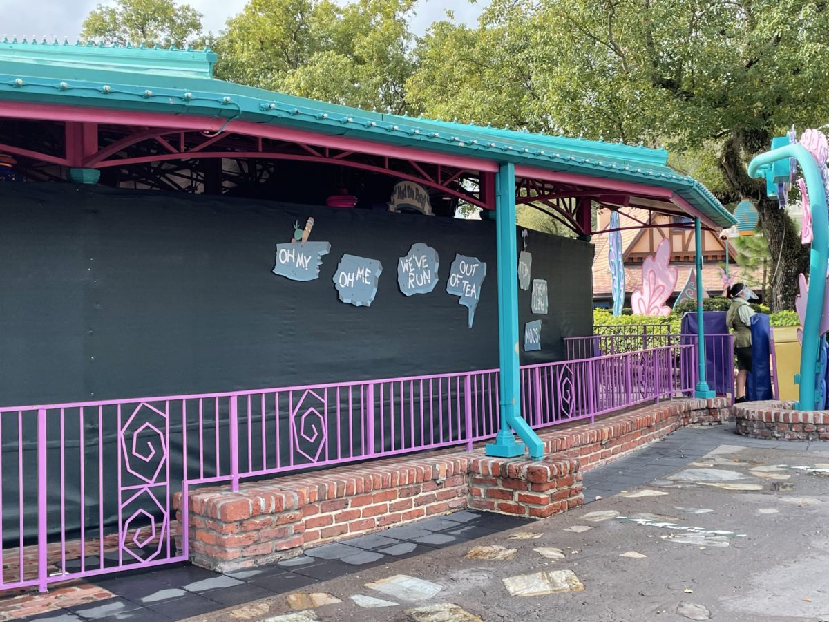 Mad Tea Party is still being refurbished as well and something about the sign on the far end has been really bugging us. Reading it just makes us feel all topsy-turvy.