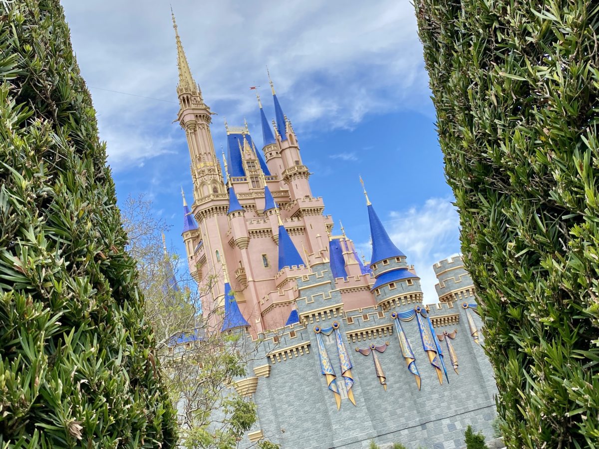 With new decorations arriving almost every other day on Cinderella Castle for the 50th Anniversary, it must feel a bit redundant to see another blue and gold swag, but we still get a thrill to see a new piece appear overnight. This piece was new today, on the East side of the castle, and can even be seen from the front of the castle! For more pictures and information, check out our article here.