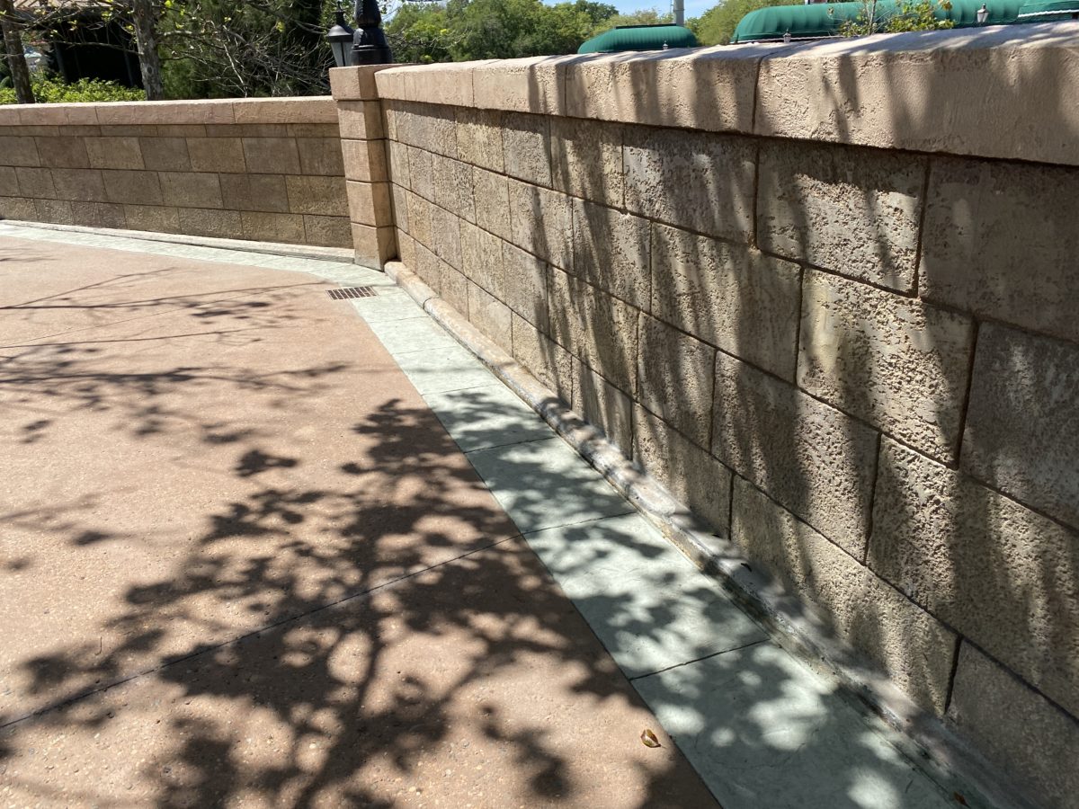 Continuing the pavement work theme, we checked on the France Pavilion and found that a border had been added along the wall, removing the wooden strips and making for a cleaner-looking finish.