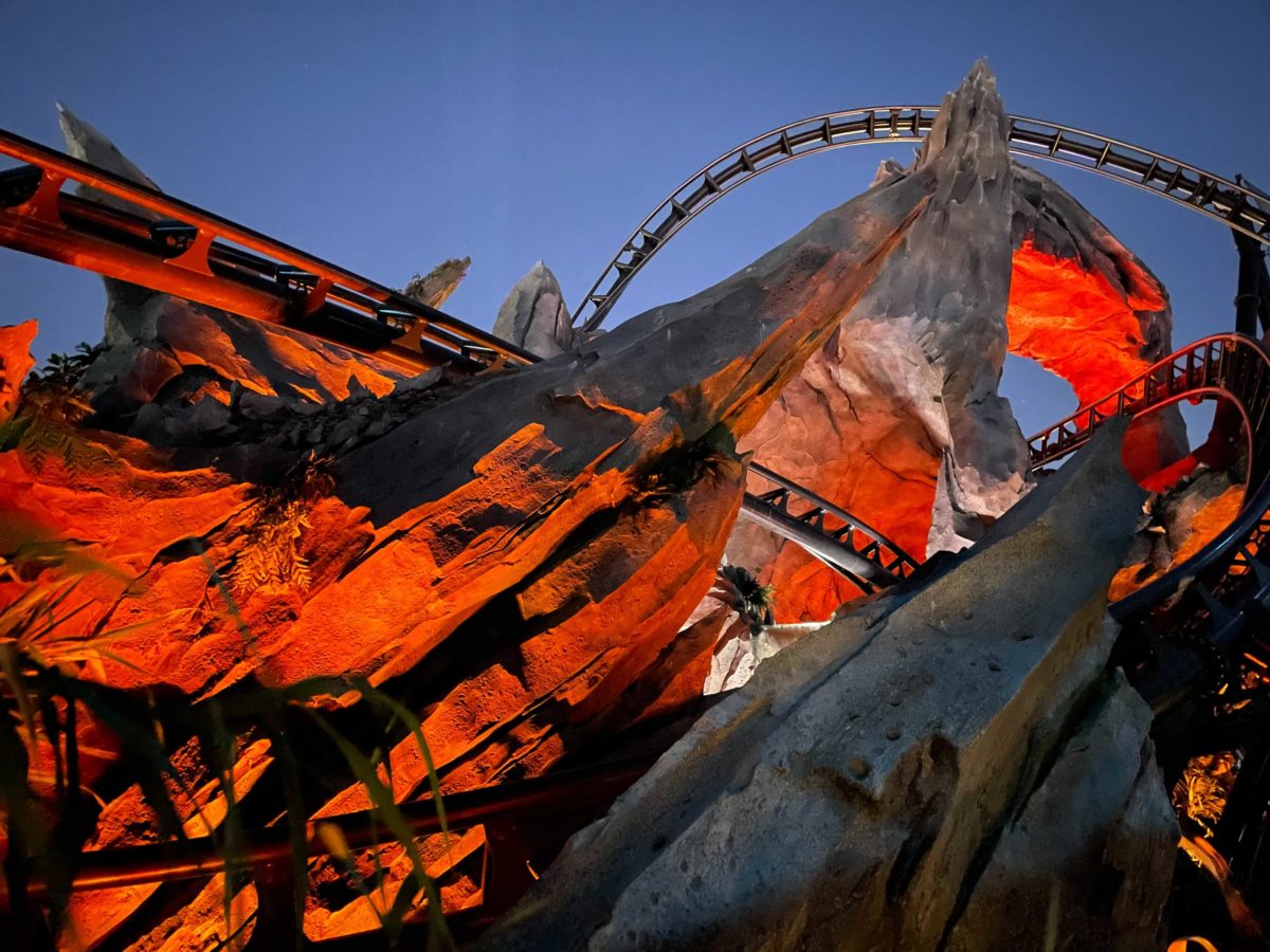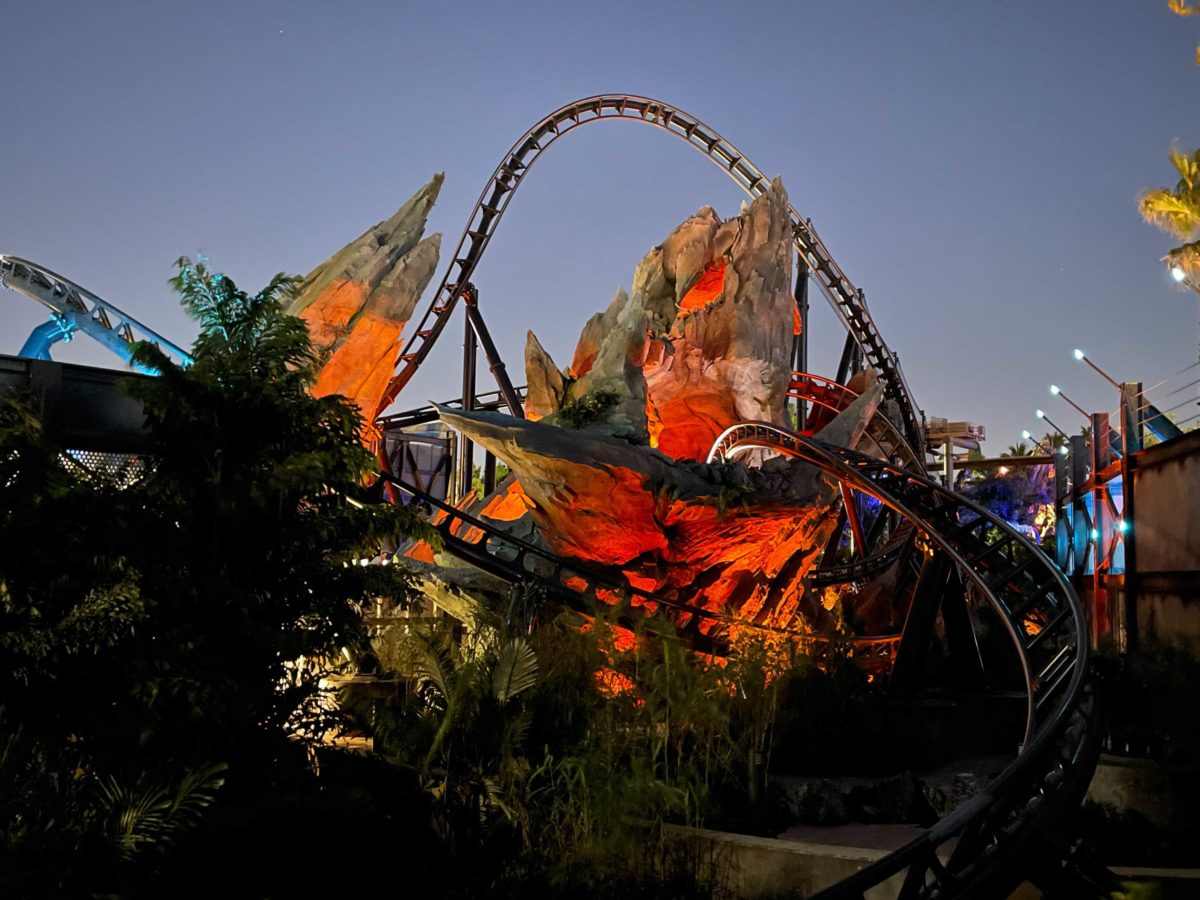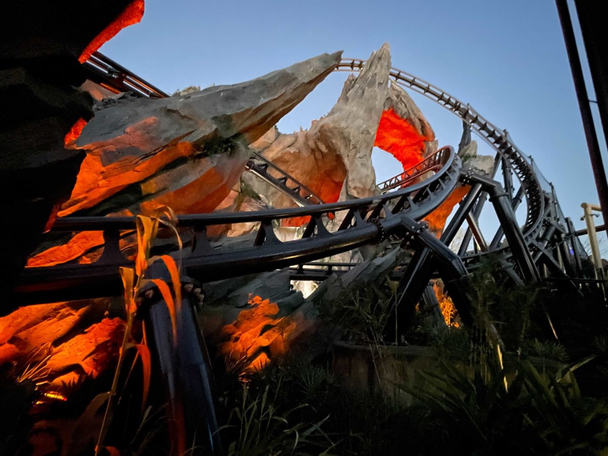 Jurassic World VelociCoaster looks even better at night! Look at all those curves. It’s going to be even more exciting to ride this after dark. Check out more photos of VelociCoaster at night in our post here.