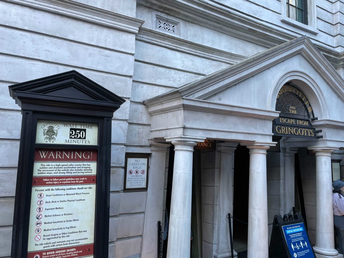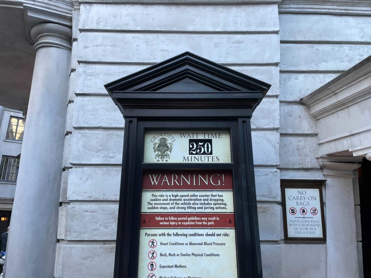 We get the feeling some of these wait times are a little inflated, though. Harry Potter and the Escape from Gringotts had a 250 minute wait posted towards the end of the day, which would mean you wouldn’t even get on the ride until long after park close.
