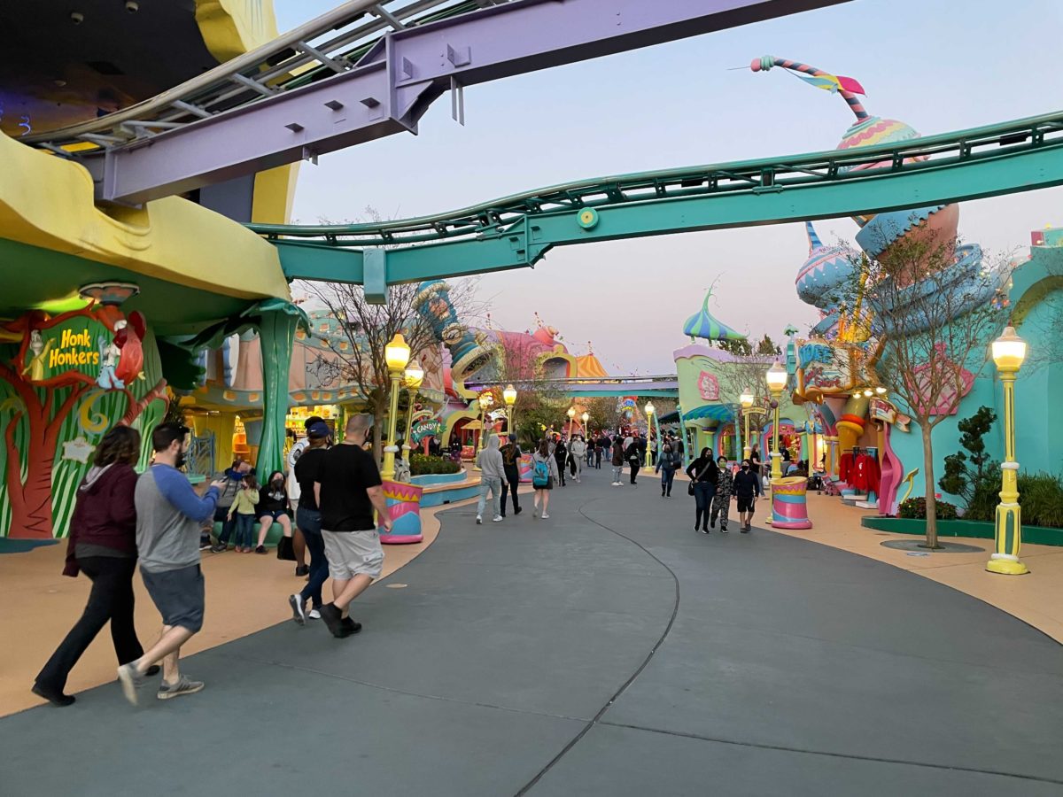 We made our way over to Islands of Adventure for the rest of the evening. Seuss Landing is always pretty at sunset, especially when you take a ride on the High in the Sky Seuss Trolley Train Ride.