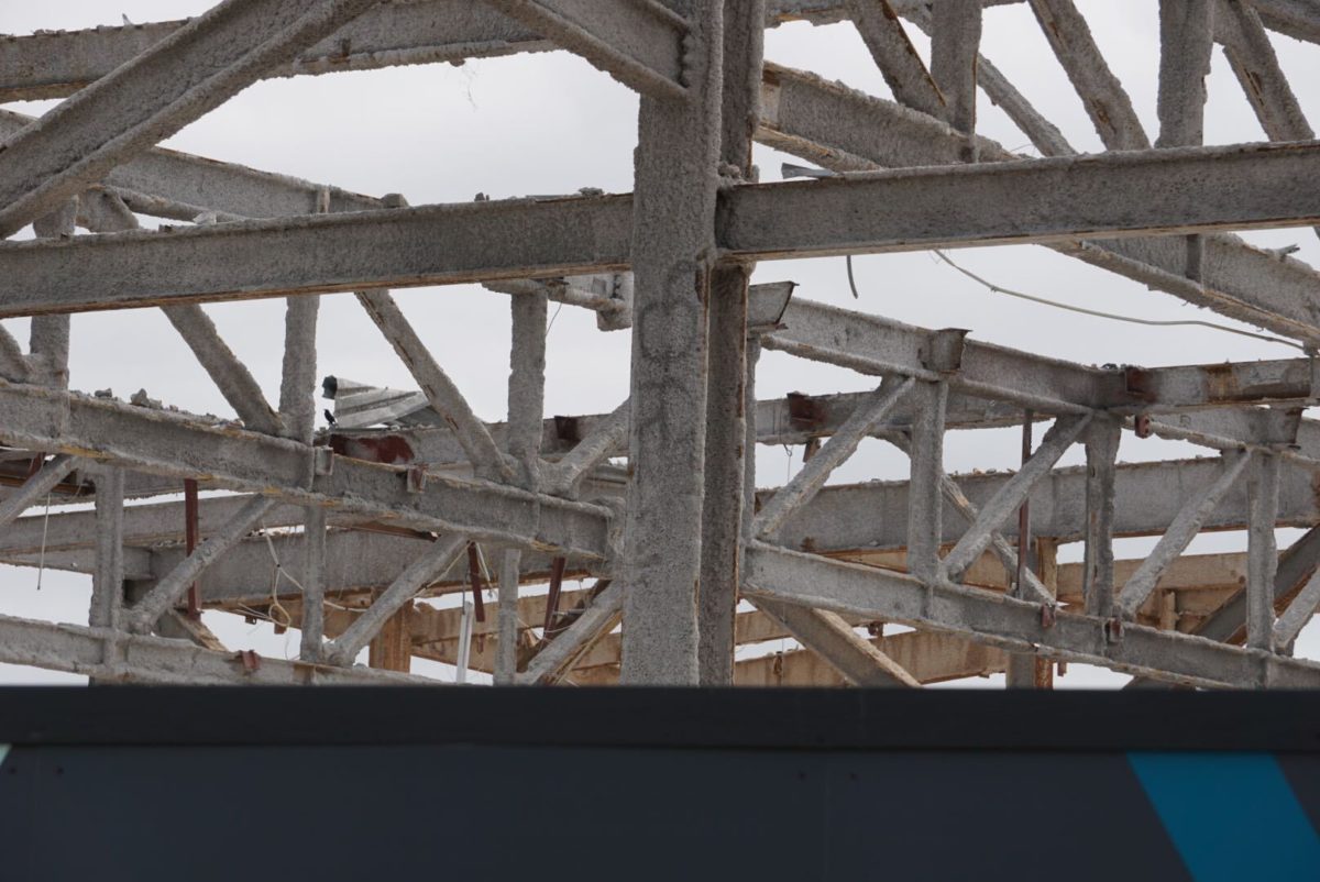 Structural support beams continue to be removed from the building.