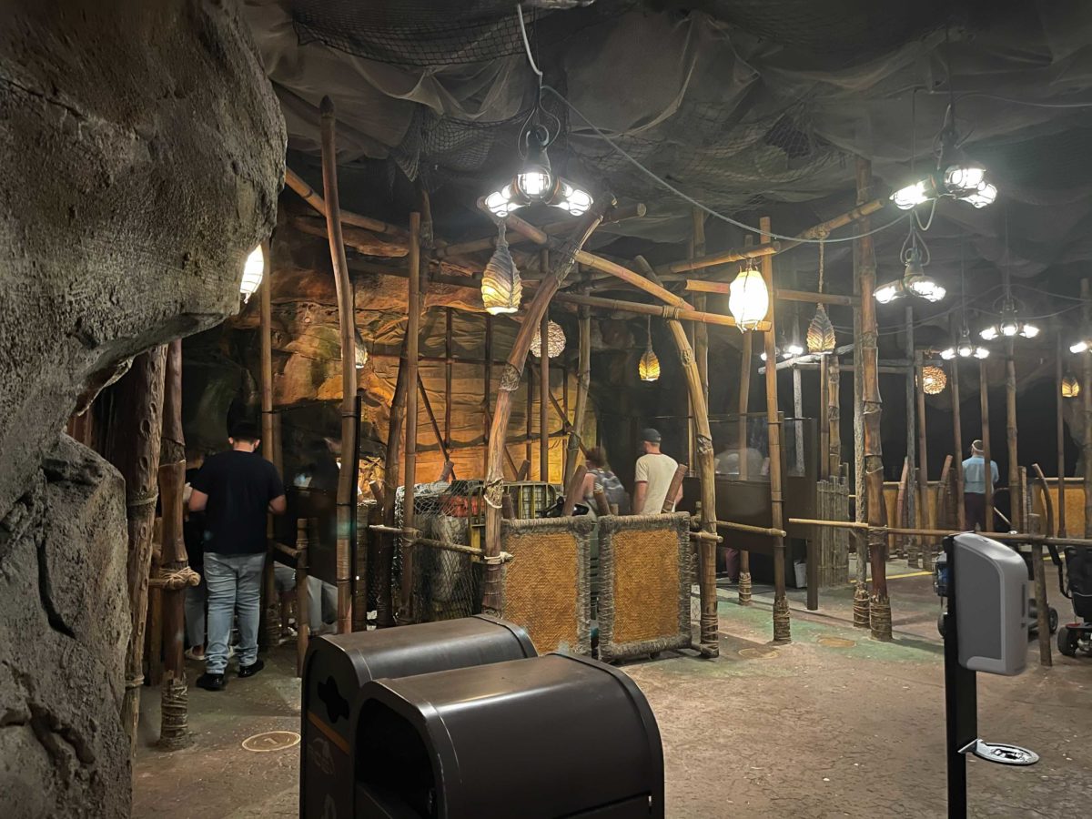 Plexiglass dividers and physical distancing markers were added to a multitude of attractions as an enhanced COVID-19 safety measure. The Na’vi River Journey at Disney’s Animal Kingdom received plexiglass dividers for at least one boat recently. Now, the loading platform in the queue also has plexiglass dividers installed.