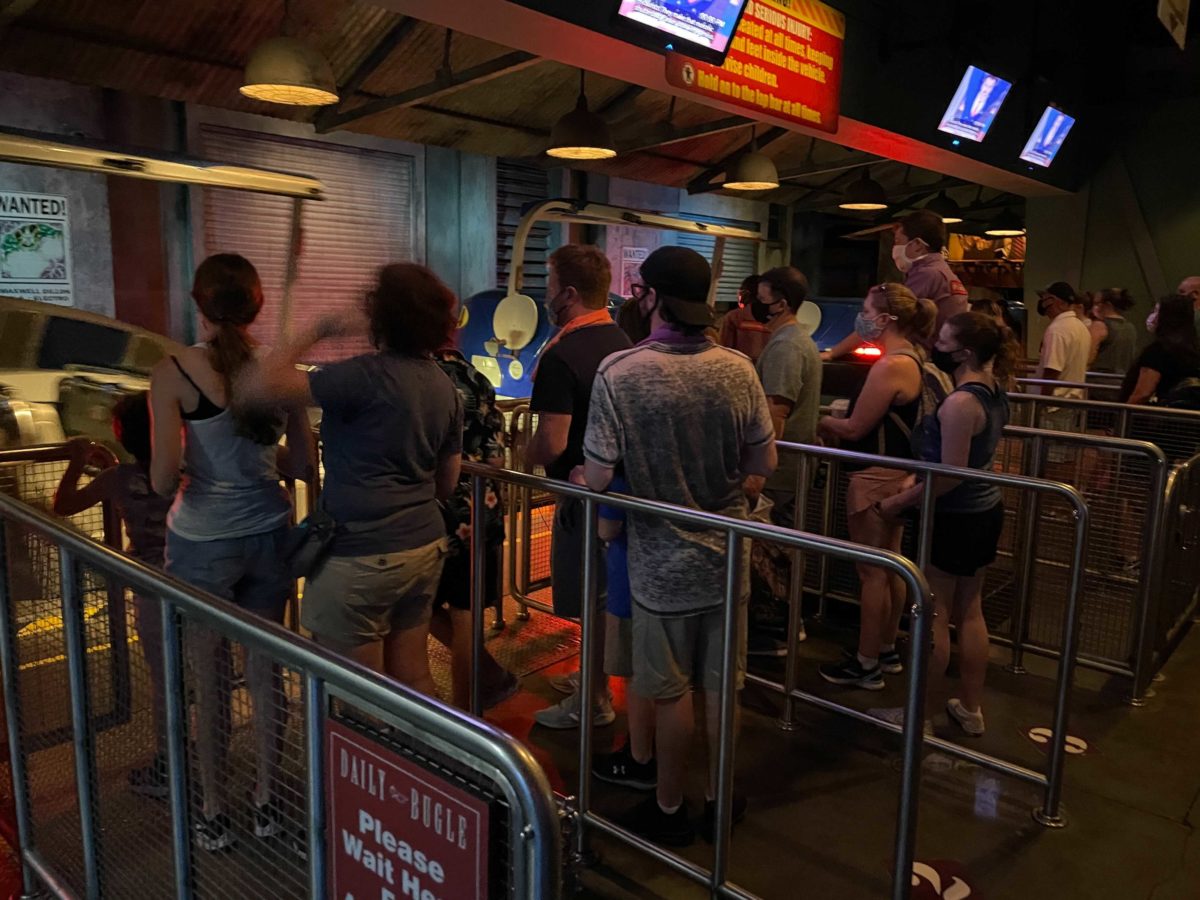 Well it looks like yet another attraction has removed any attempt at keeping guests physically distant from each other. We reported that the E.T. Adventure, Transformers – The Ride, “The Bourne Stuntacular”, The High in the Sky Seuss Trolley Train Ride!, and now The Amazing Adventures of Spider-Man are loading every row and taking no real measures to keep guests distant while waiting to ride.