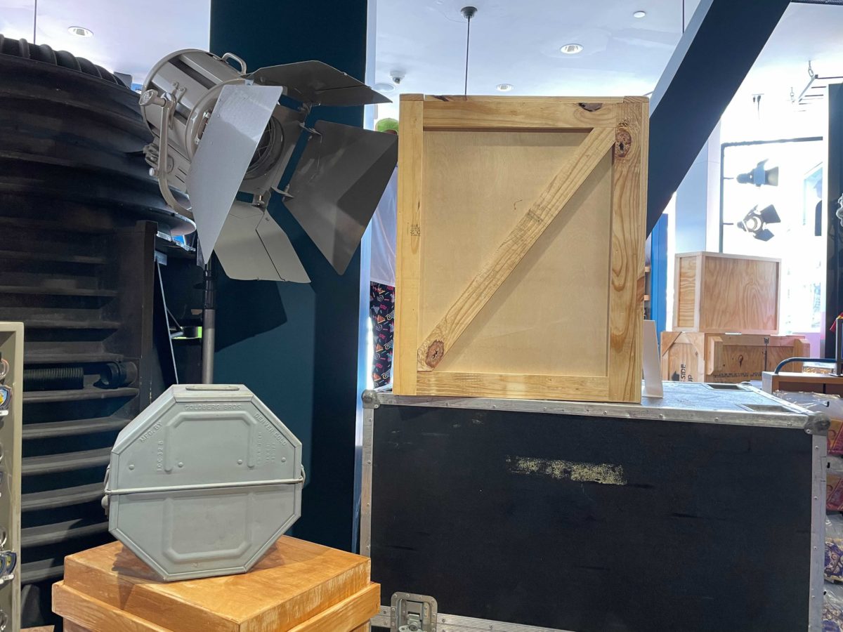 Extra space is filled in with filmmaking equipment and shipping crates.