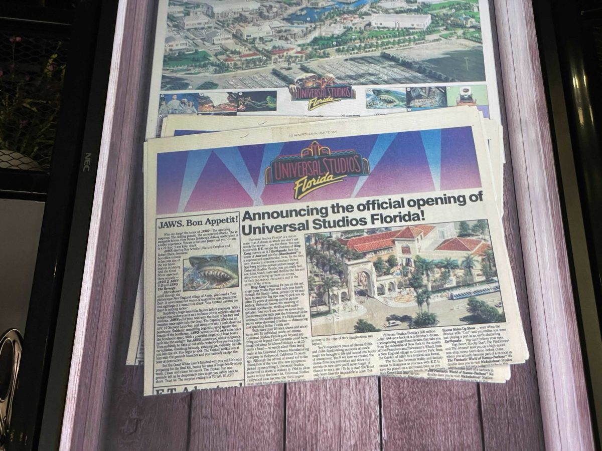 This vintage newspaper announces the park’s official opening and has an article to the side about the now defunct Jaws ride.
