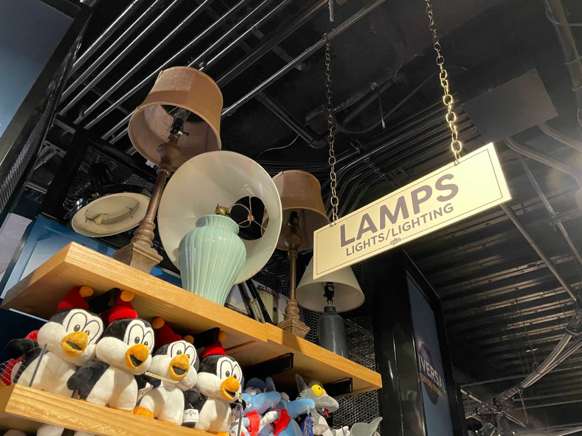 One shelf just has lamps and is appropriately subtitled “lights/lighting.”