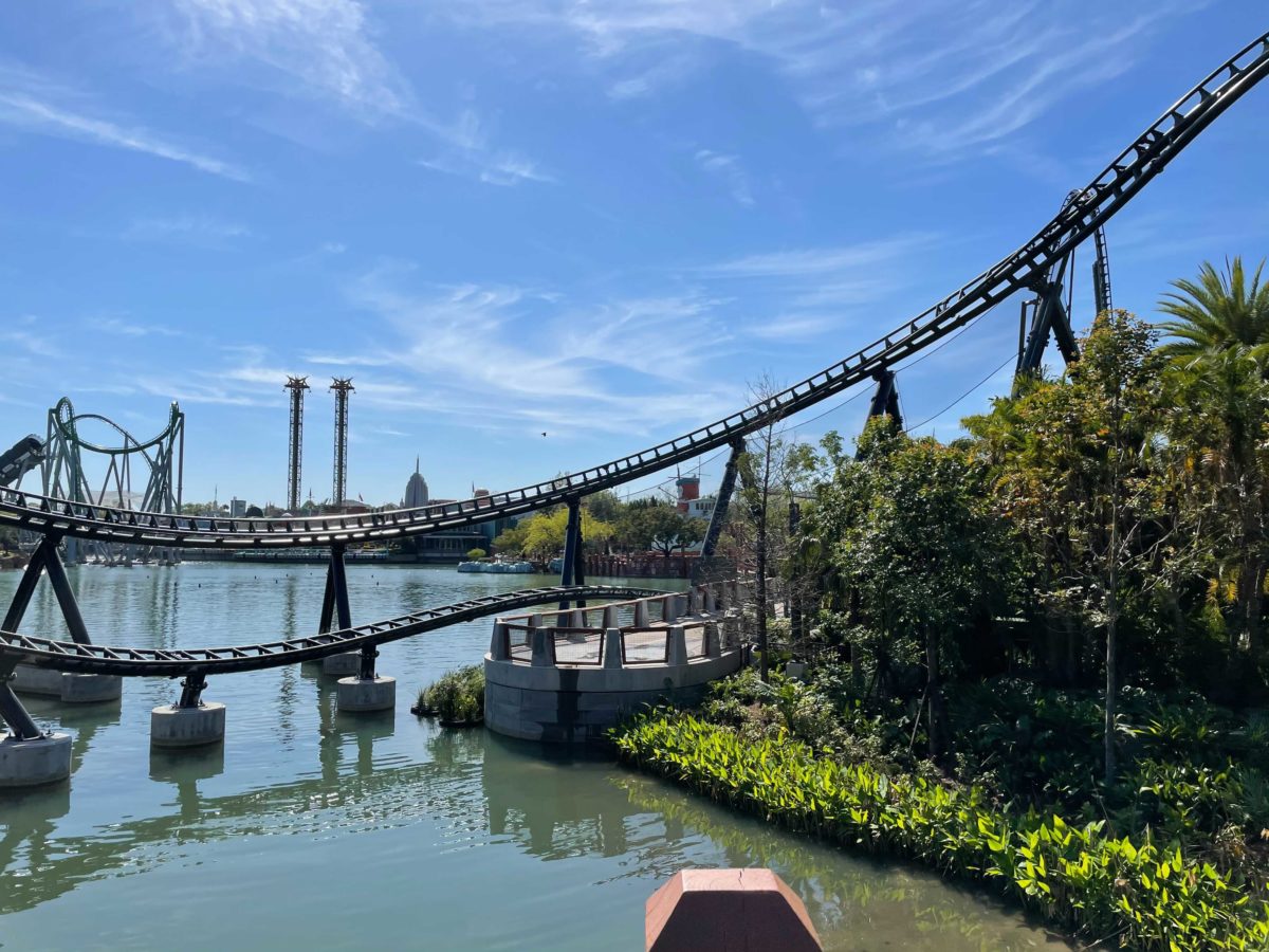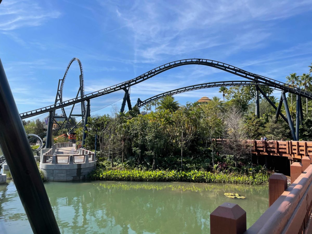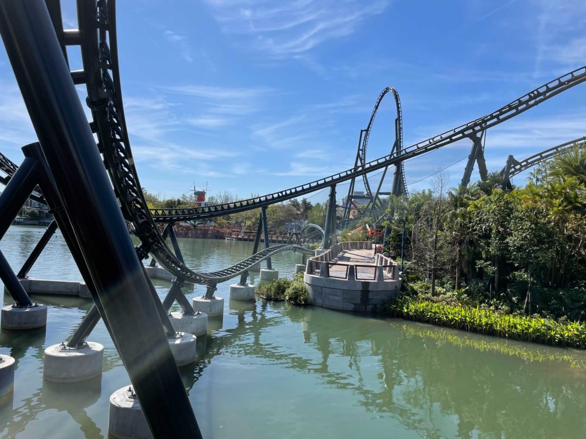 The bridge connecting Jurassic Park and Lost Continent has reopened today, giving us a great view of the Jurassic World VelociCoaster.