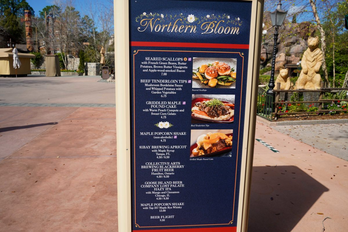Menu for Northern Bloom at the 2021 Taste of EPCOT International Flower & Garden Festival