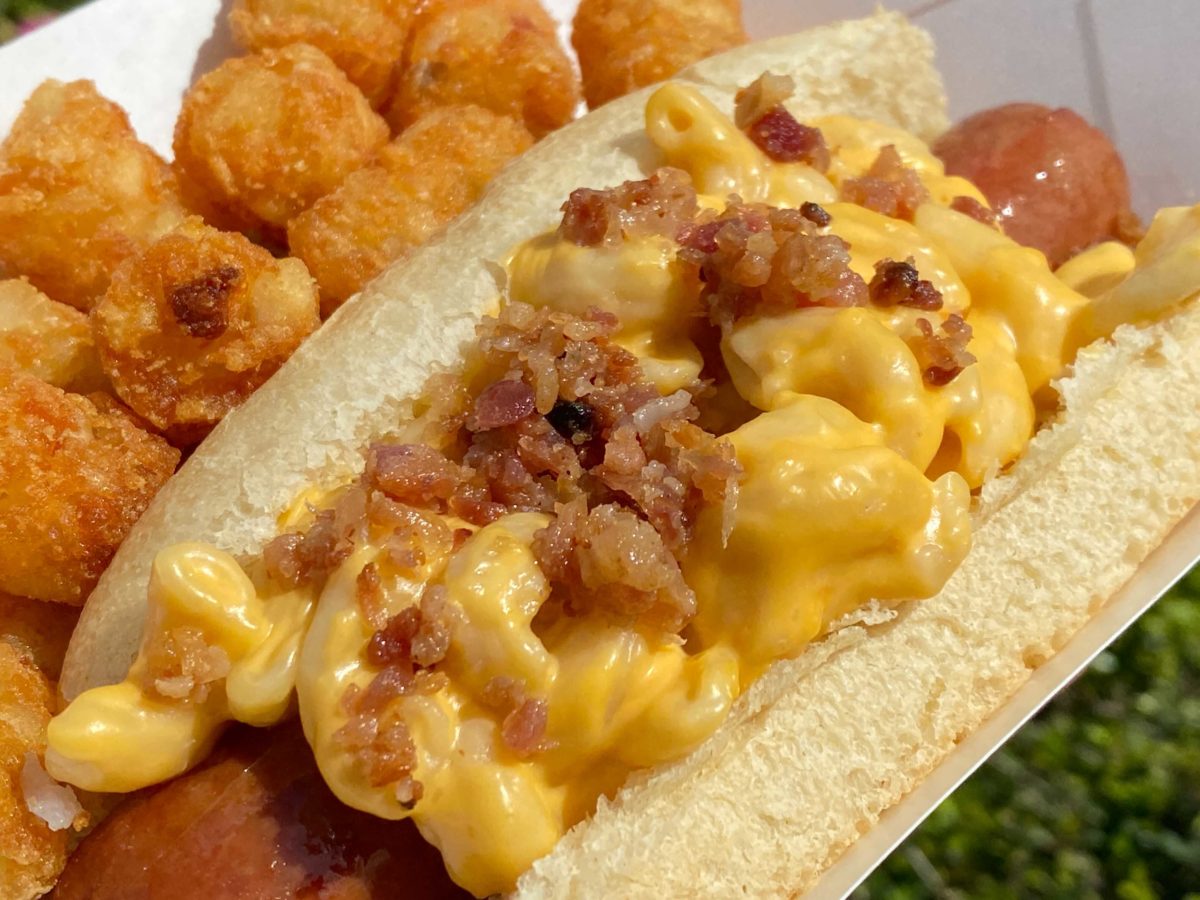 Loaded Bacon Macaroni and Cheese and Tater Bites Hot Dog — $11.49