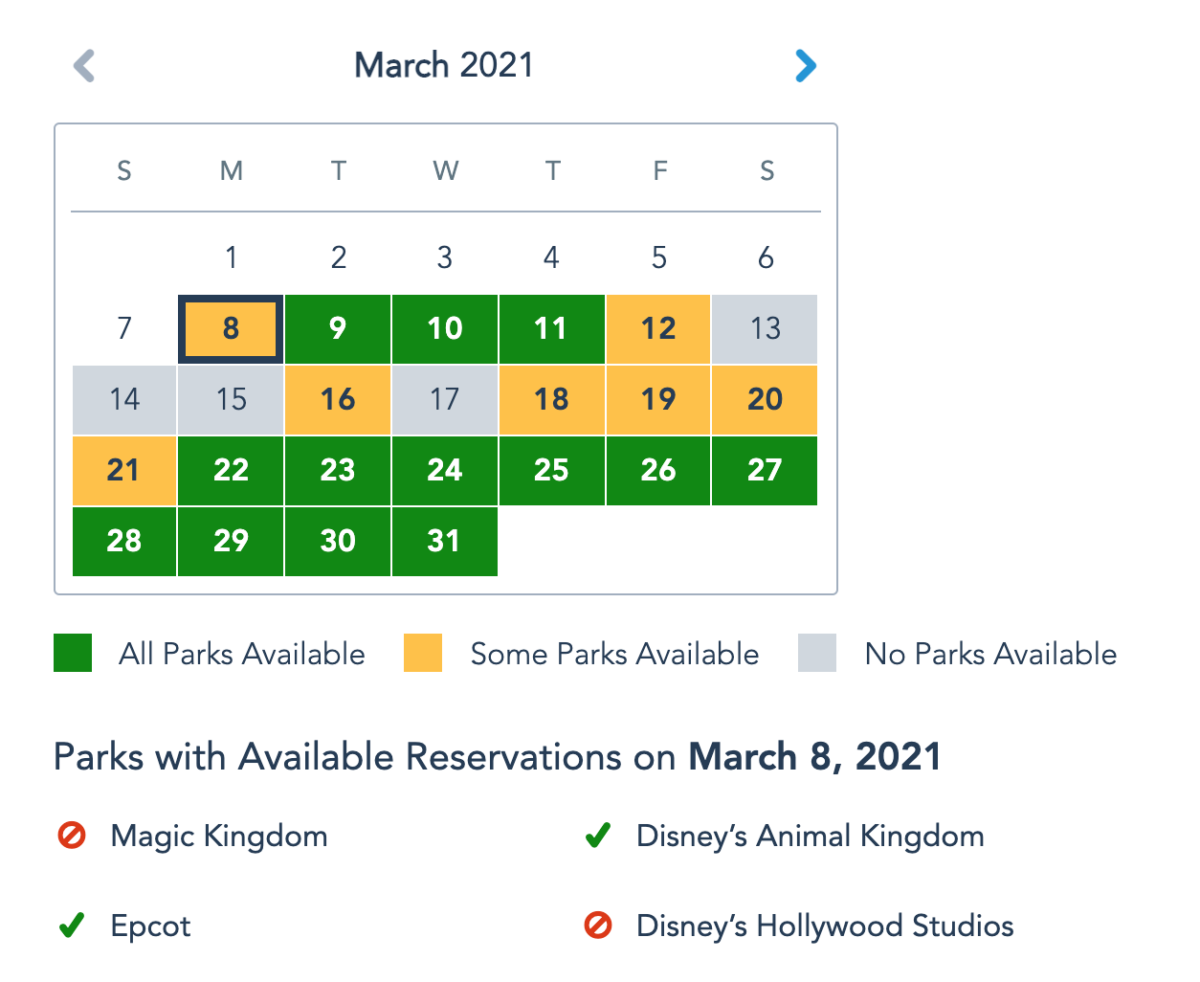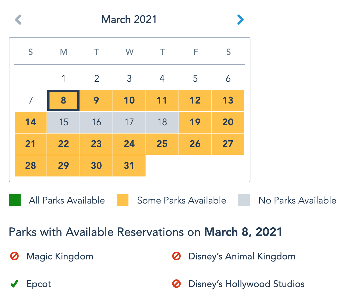Disney’s Hollywood Studios is not available for the rest of the month, and other parks are not available on some days.