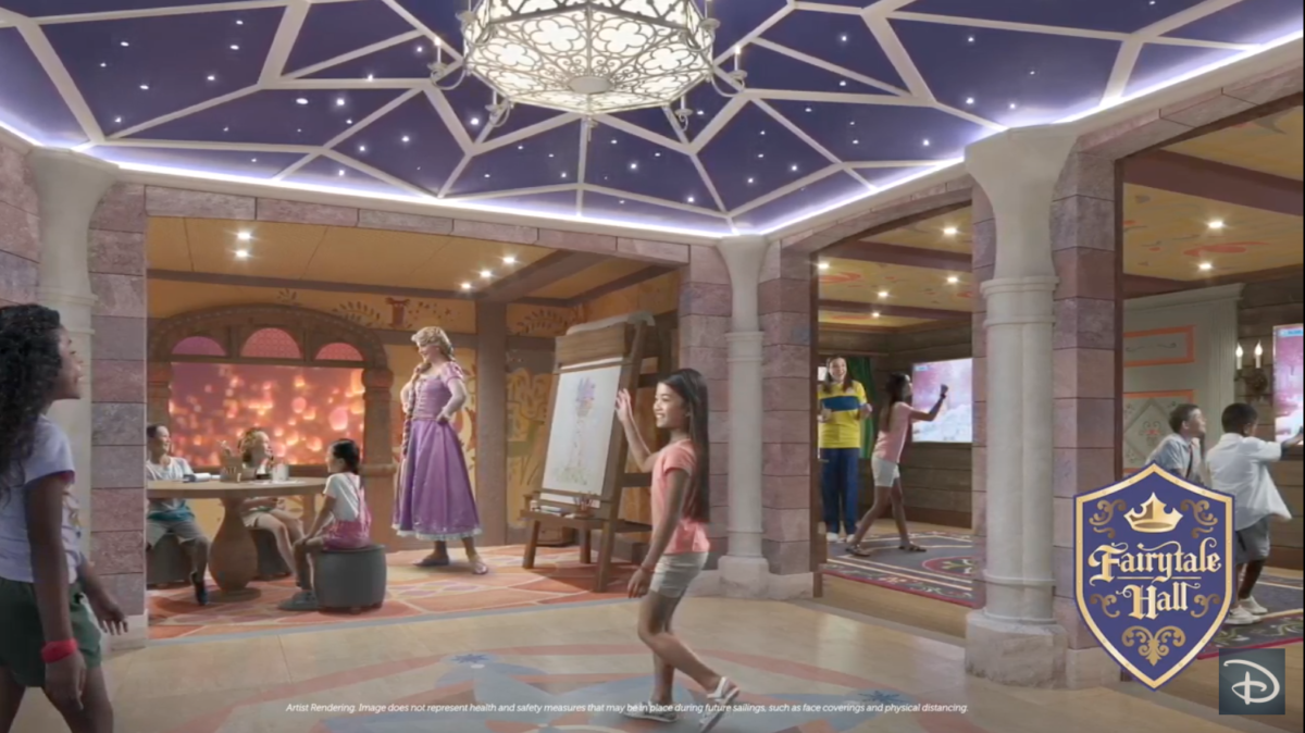 While there is a standard door to the Oceaneer Club, it will be the first of its kind to also include a secret entrance. Kids can literally slide into the club from this secret door in the Great Hall of the Disney Wish.