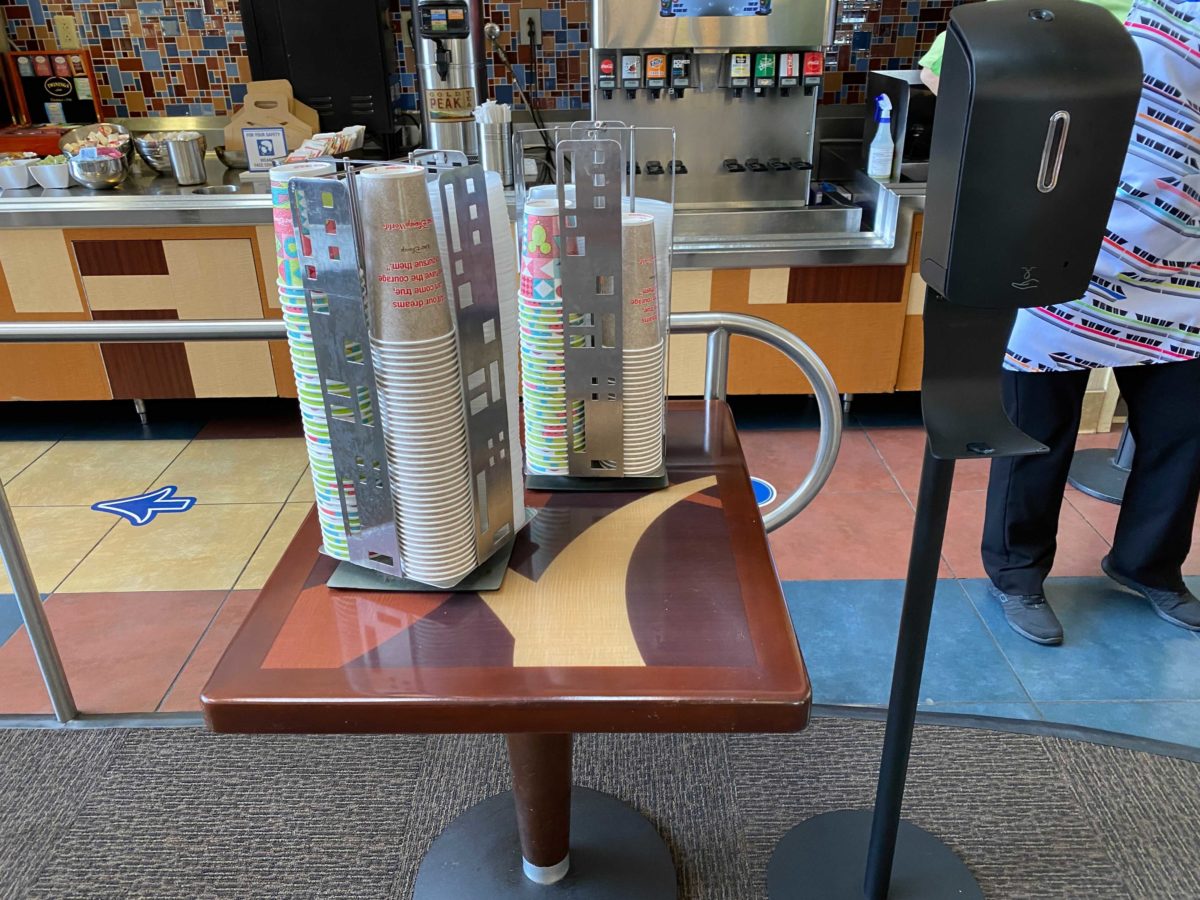Guests are first instructed to use the hand sanitizer available at the entrance to the service station.