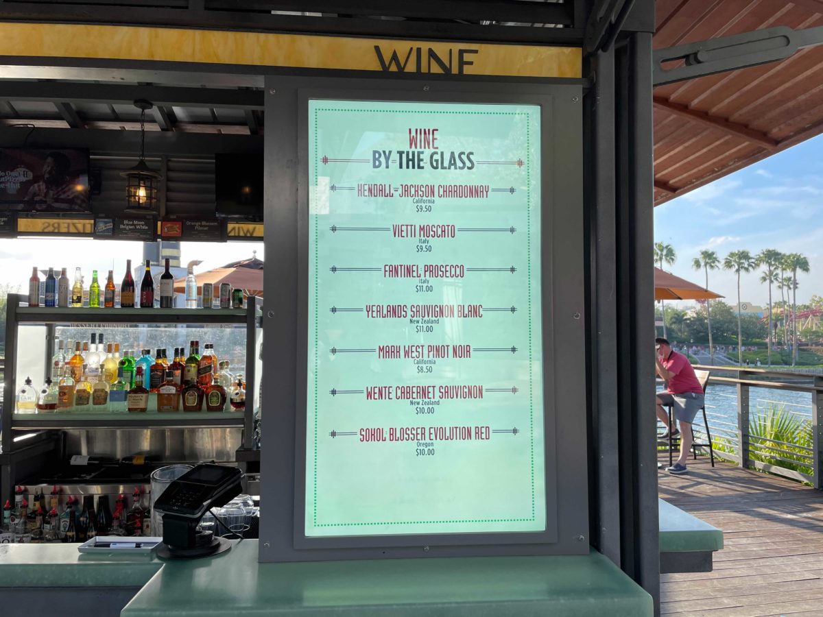 Making our way through CityWalk, we noticed that the Riverfront bar is now serving appetizers as well as cocktails and wine by the glass. The new appetizers are a Meat & Cheese Sampler, Caprese Salad, and Wine Snack Pack. This might be a great stop for a light snack and a drink after a long day in the park or before heading to dinner. The Riverfront bar is located across from Bigfire.
