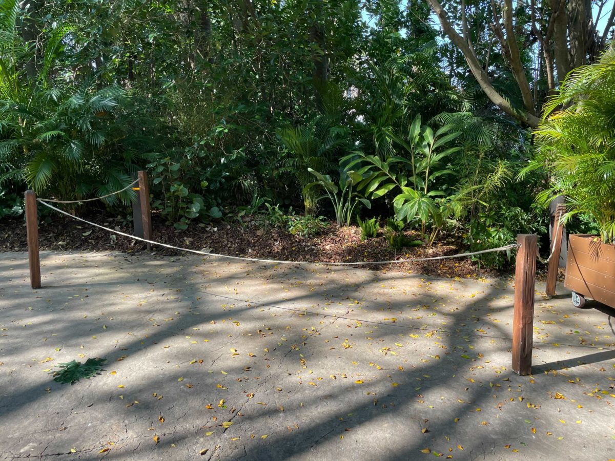 Work continues on the pathway leading towards the bypass bridge. We wonder if we might see the Jurassic Park vehicle returned to this area soon, since there’s a small area roped off.
