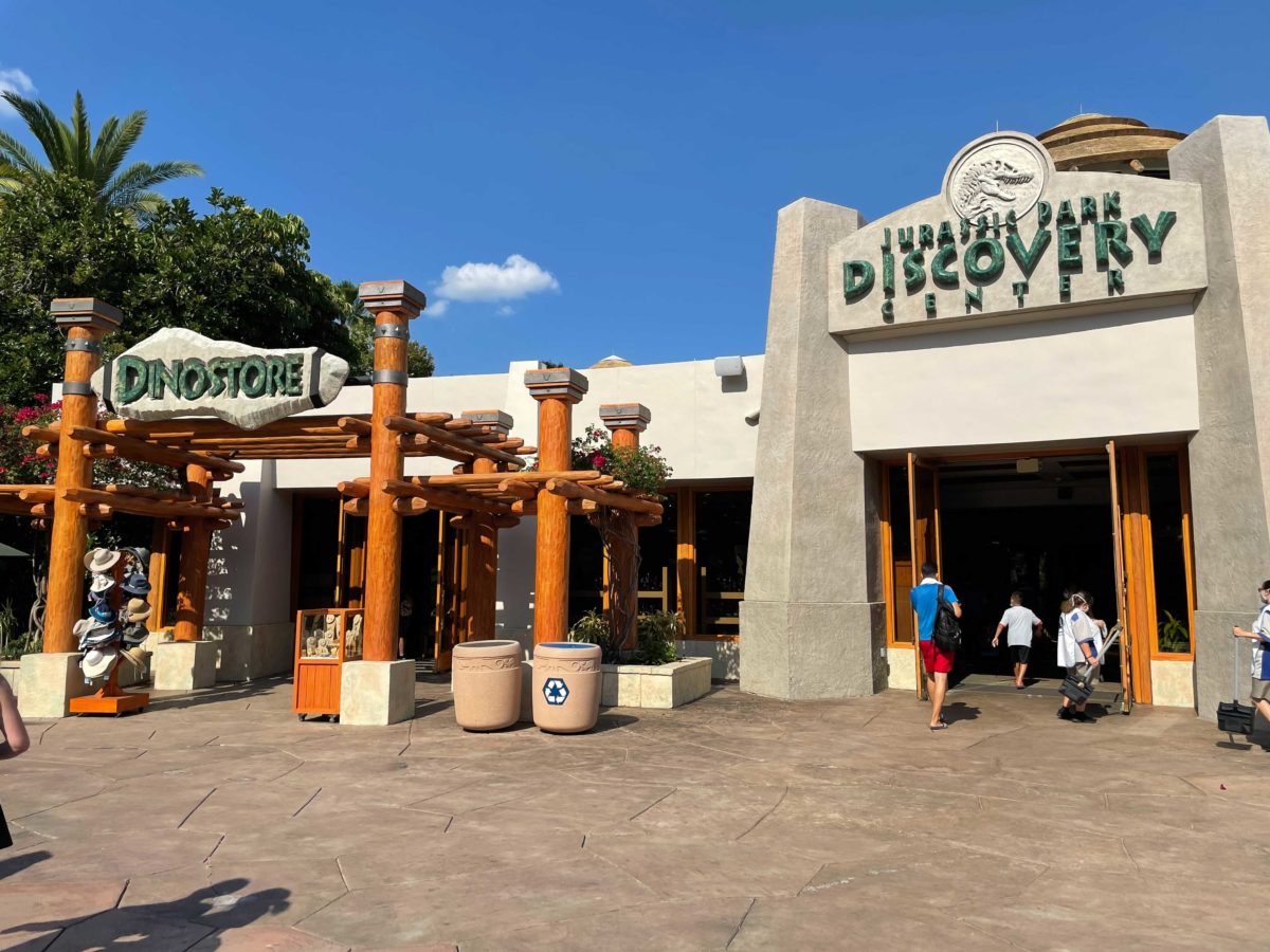 Another coat of paint has been added to the Dinostore sign to give it a multi-colored look that matches the Discovery Center sign. The Burger Digs sign will most likely be painted to match.