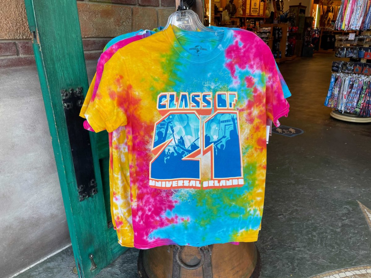 Inside the Islands of Adventure Trading Company, a new “Class of ’21” tie-dye shirt is available for $30.