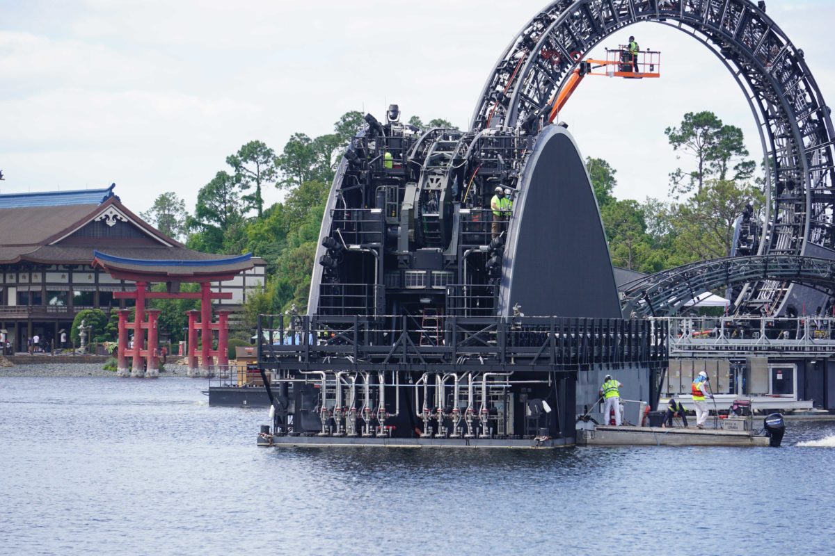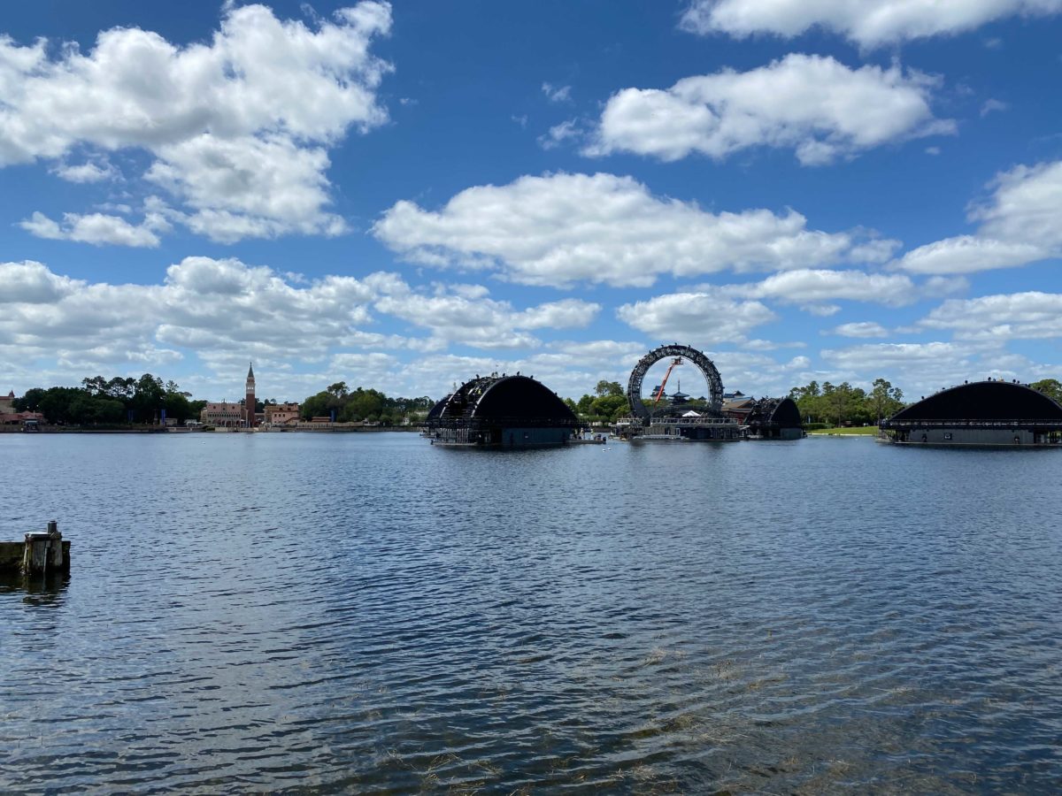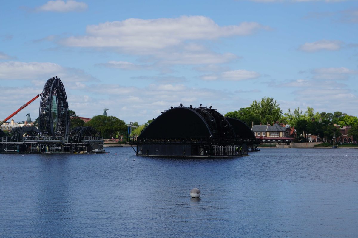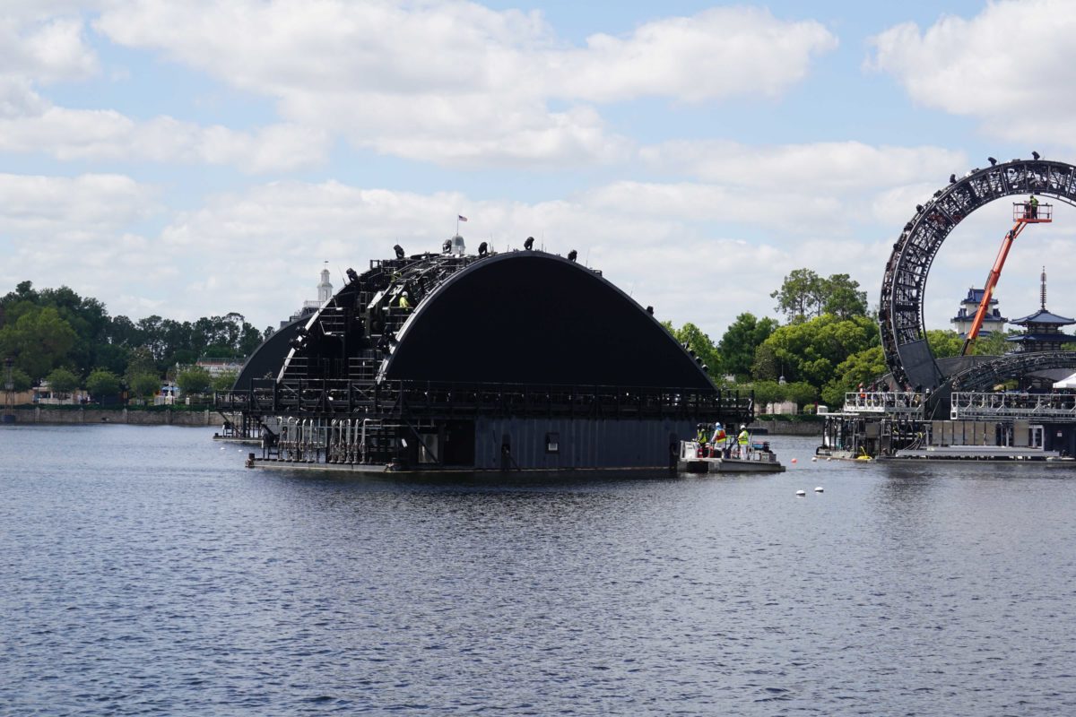 There were plenty of crew members on World Showcase Lagoon in EPCOT this morning as they cleaned and painted some of the “Harmonious” barges parked in the water.