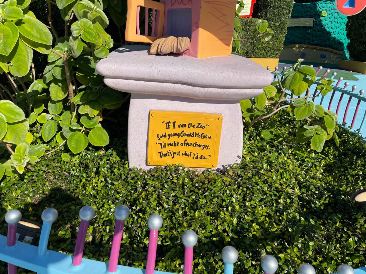Another clue that this change may not be permanent is that name of the book is still listed on the plaque beneath the sculpture that holds up the sign. Only time will tell if this is a part of something bigger happening at Seuss Landing.