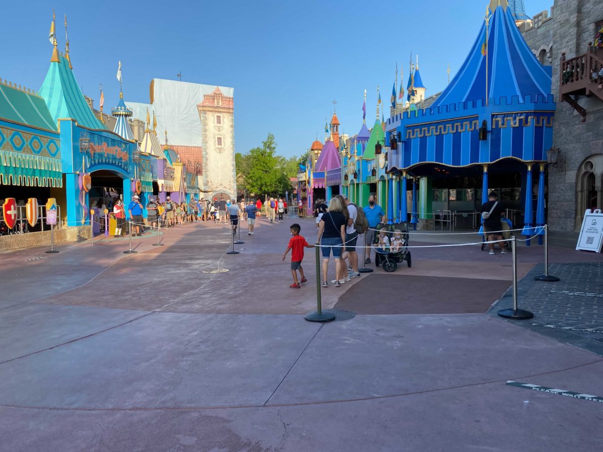 To get Magic Kingdom looking perfect for its 50th birthday later this year, pavement in Fantasyland is being replaced. Currently, two sections of fresh pavement are cordoned off to dry.