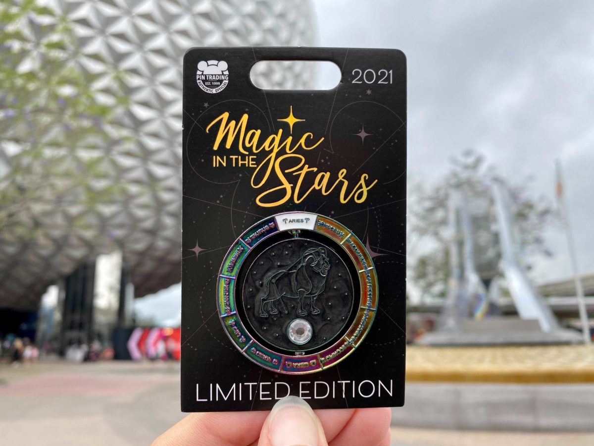 This pin is a spinner, which features Brother Bear on one side and the Aries constellation on the other.