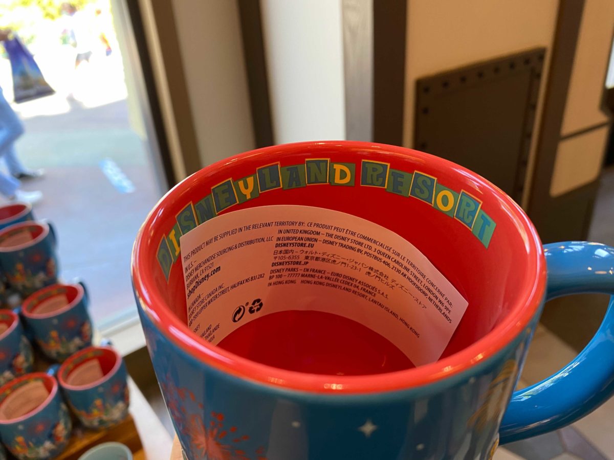 The inside of the mug is red and line with a playful Disneyland Resort logo that resembles blocks.