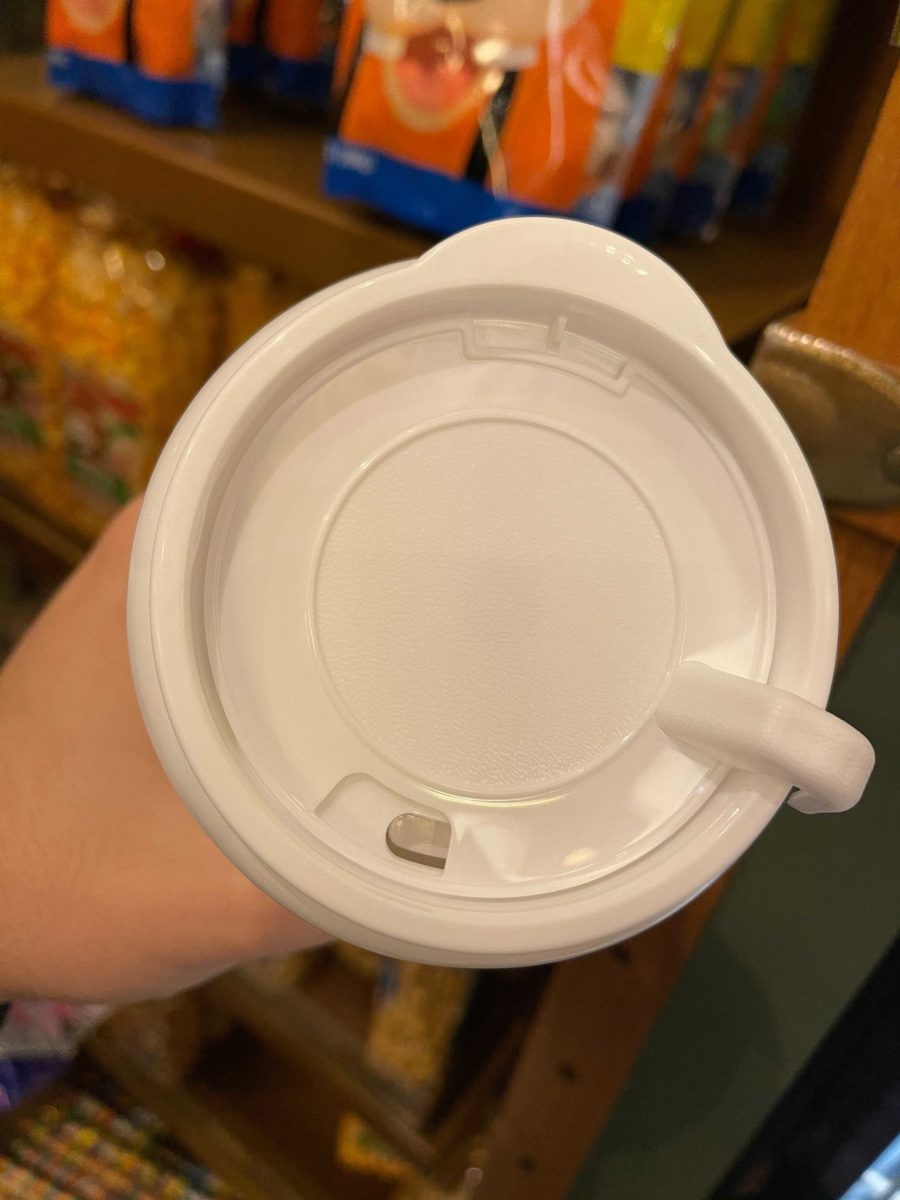 Those who use Disney Resort refillable mugs may be familiar with the design of the top! The lids on both tumblers pivot to open and close.