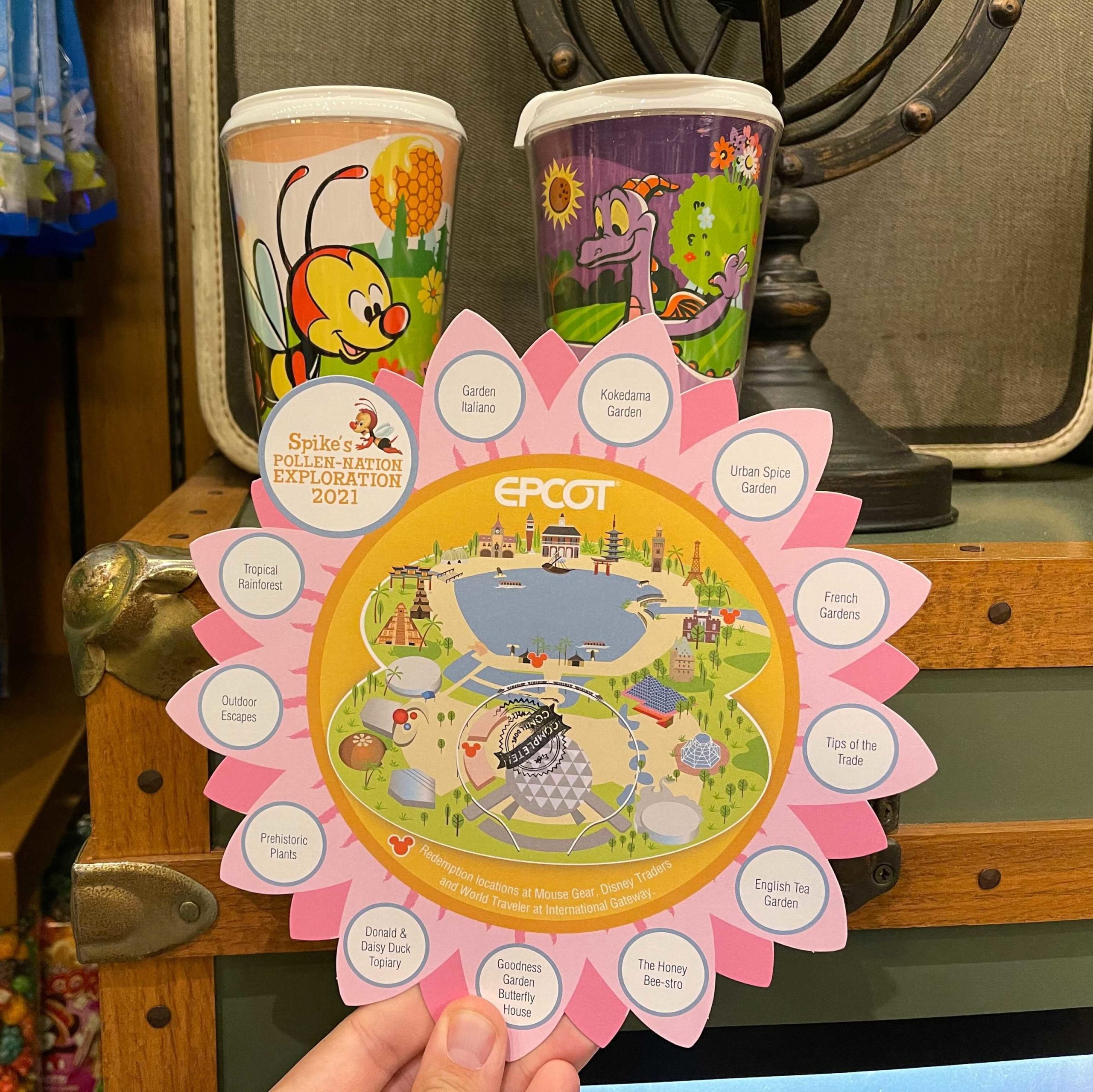 When the 2021 Taste of EPCOT International Flower & Garden Festival started on March 3rd, Spike’s Pollen-Nation Exploration Scavenger Hunt began as well. The previous prizes for completing the scavenger hunt were Flower & Garden Festival-themed character plates, but now there are new prizes available featuring the same beloved characters.
