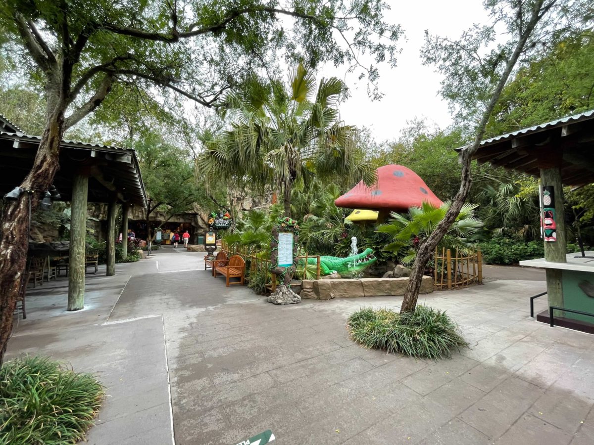 Guests dining at Rainforest Cafe can also exit through this courtyard and enter Disney’s Animal Kingdom through a separate set of touch-points from the main entrance.