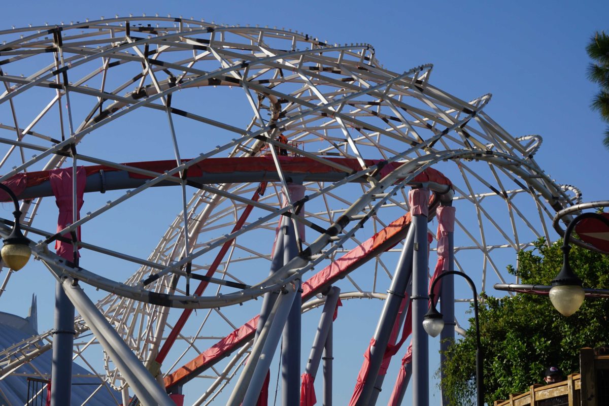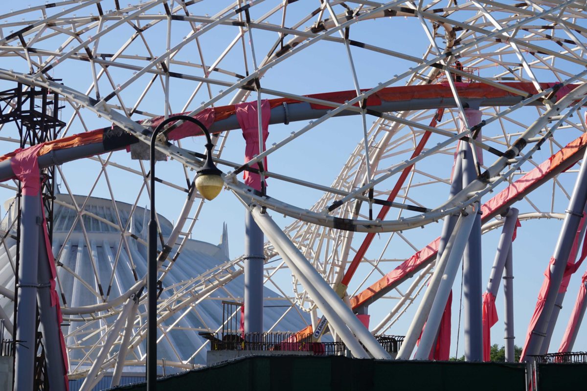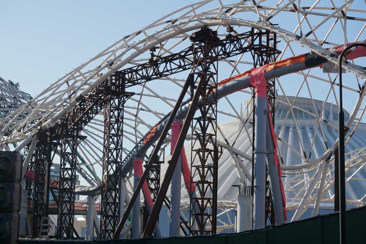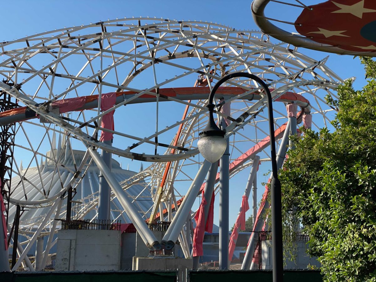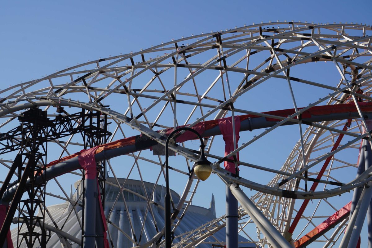 Right now, the removal of the support structures gives us a view of Space Mountain through the frame. However, this view will be blocked when the canopy is installed.