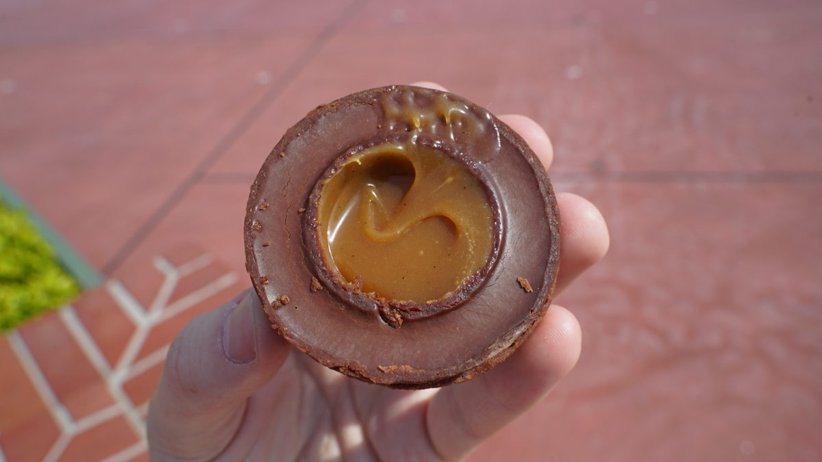 Everything about this experience was incredible, from the wrapping showed off earlier to the actual eating of the cookie. The rich, thick dark chocolate ganache on the outside combines with the soft chocolate cookies on top and the gooey caramel on the inside to create a sweet treat for your day at Tokyo Disneyland. True to their intent, this certainly is a step up from your typical theme park bakery fare. Although the price may make some balk, the Caramel Ganache Cookie Sandwich is certainly worth your yen if you’ve got the heart to stand in the line. And bring a napkin, just in case the caramel oozes onto your clothes.