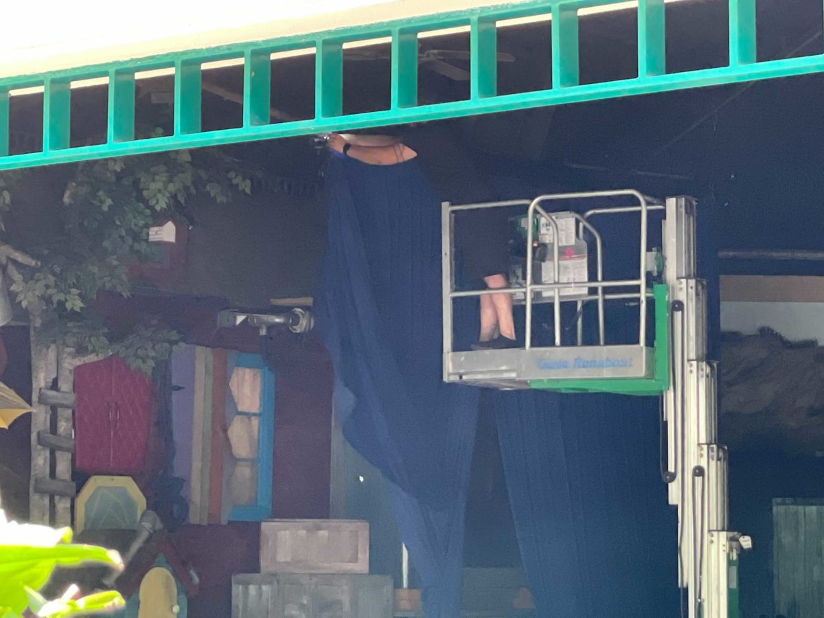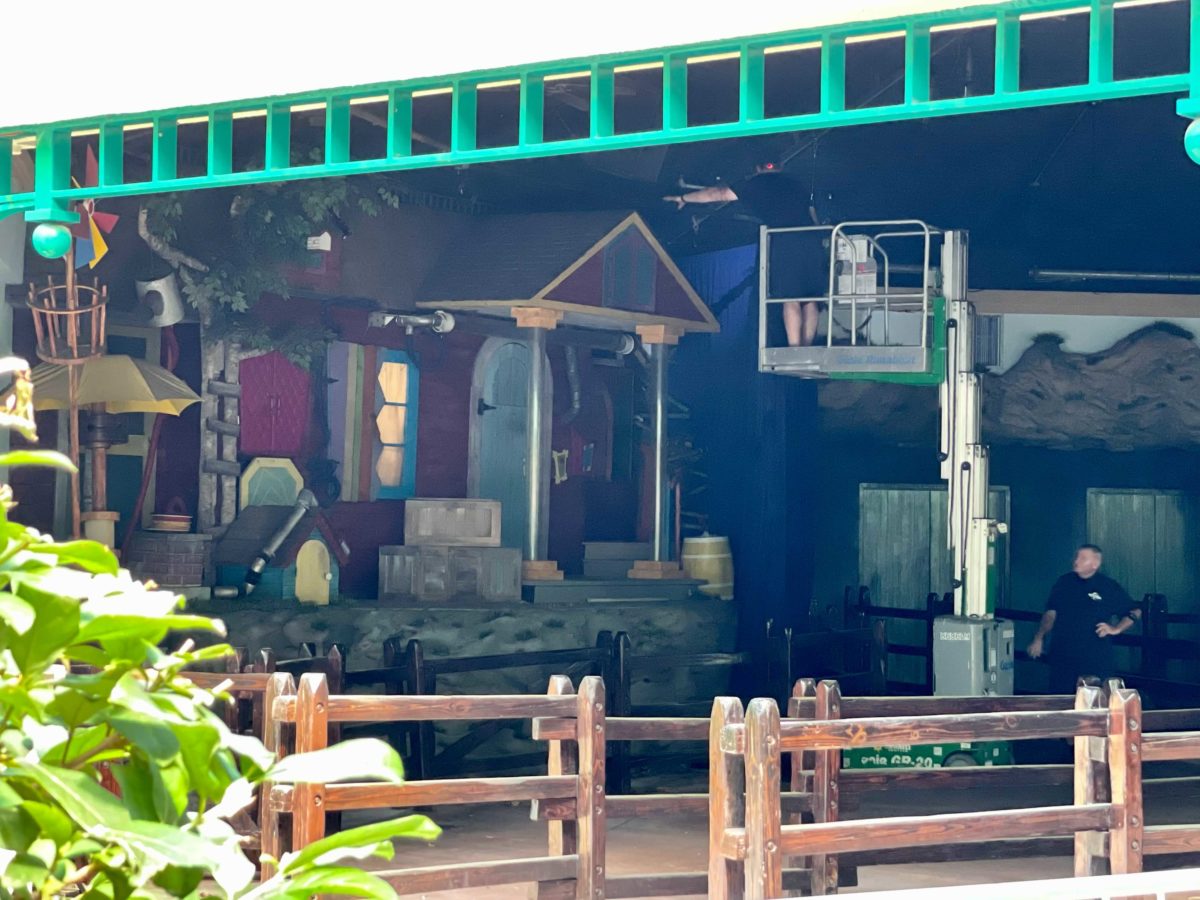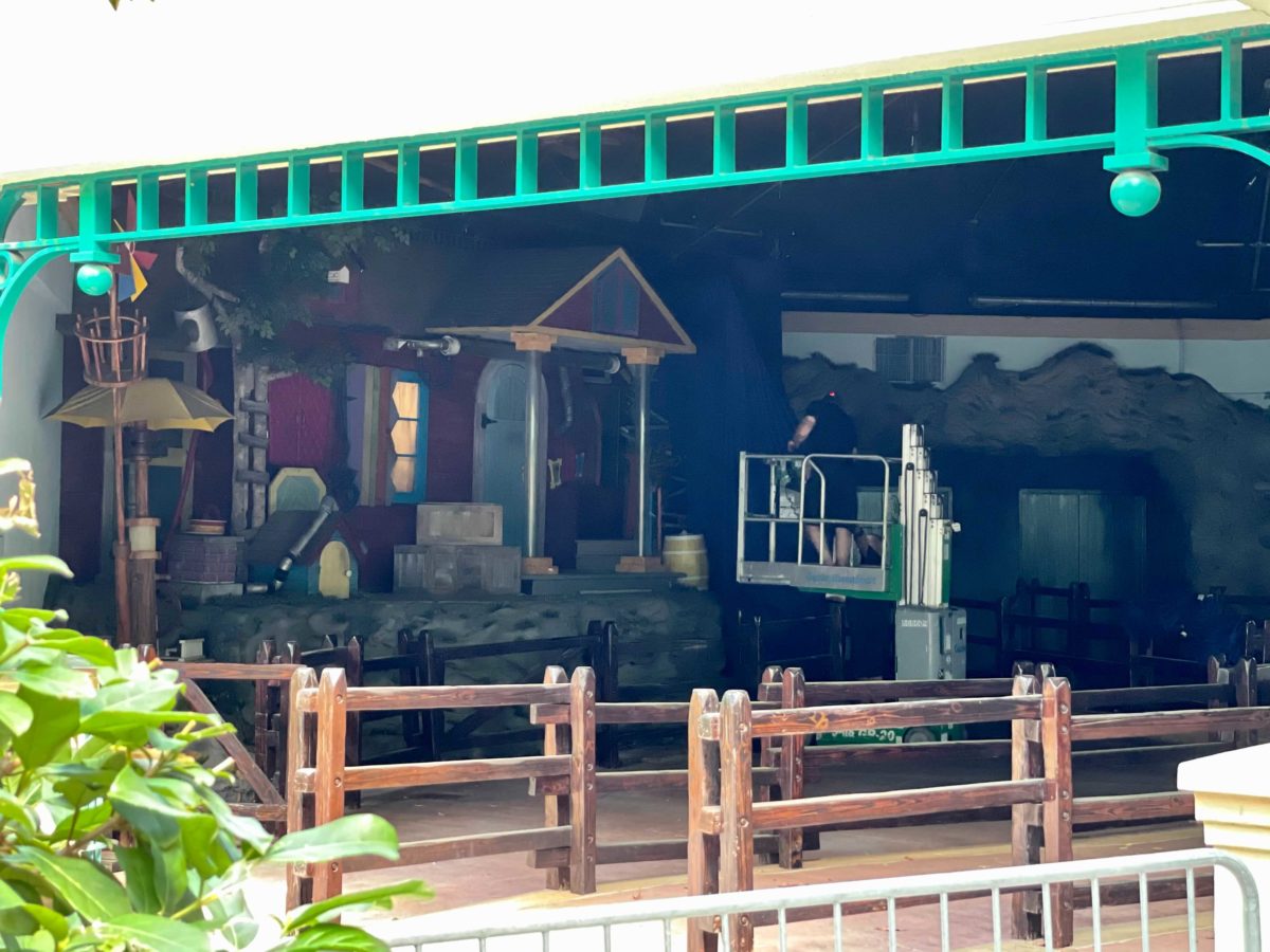 Peek-A-Boo’s house is still intact at the old A Day in the Park with Barney theater. We could see Team Members in a lift working in the area.