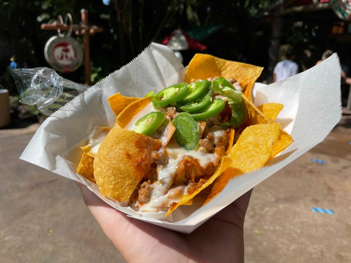 We stopped into the Watering Hole in Jurassic Park for some loaded nachos. Bloggers gotta eat, right?