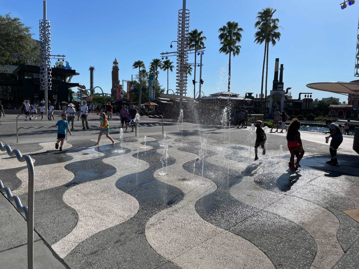 The splash pad is open again in CityWalk. It’s a hot day today and many kids are out enjoying playing in the water.