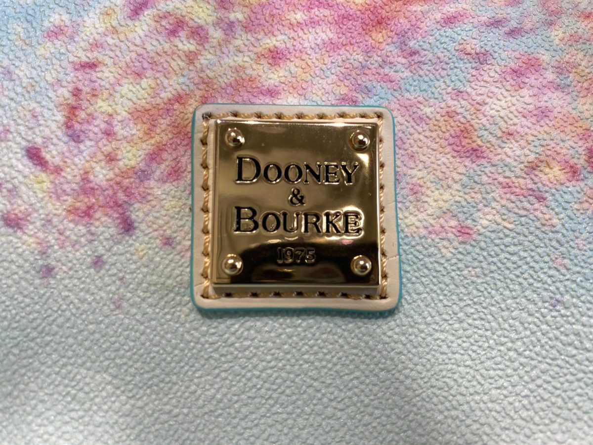 The golden Dooney & Burke logo emblem can be found on the front of the satchel.
