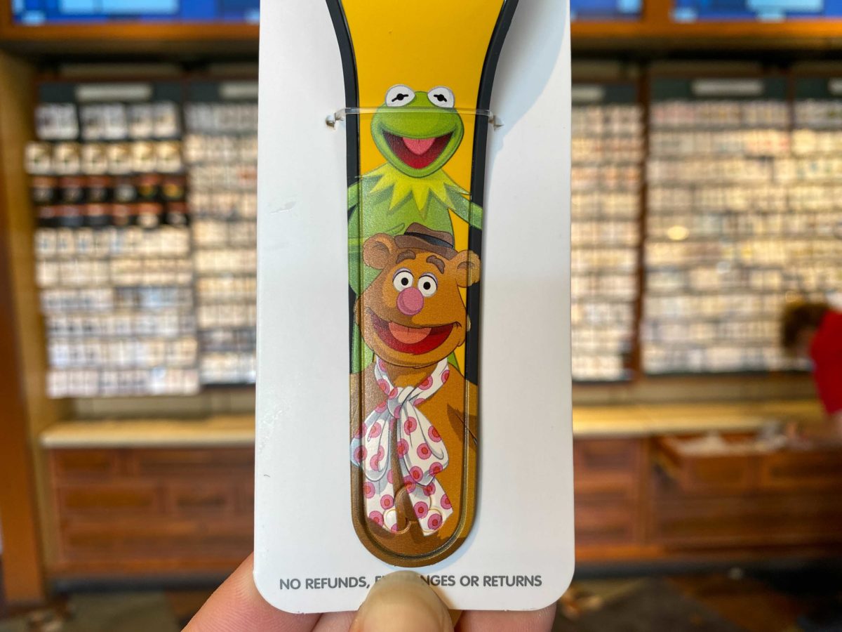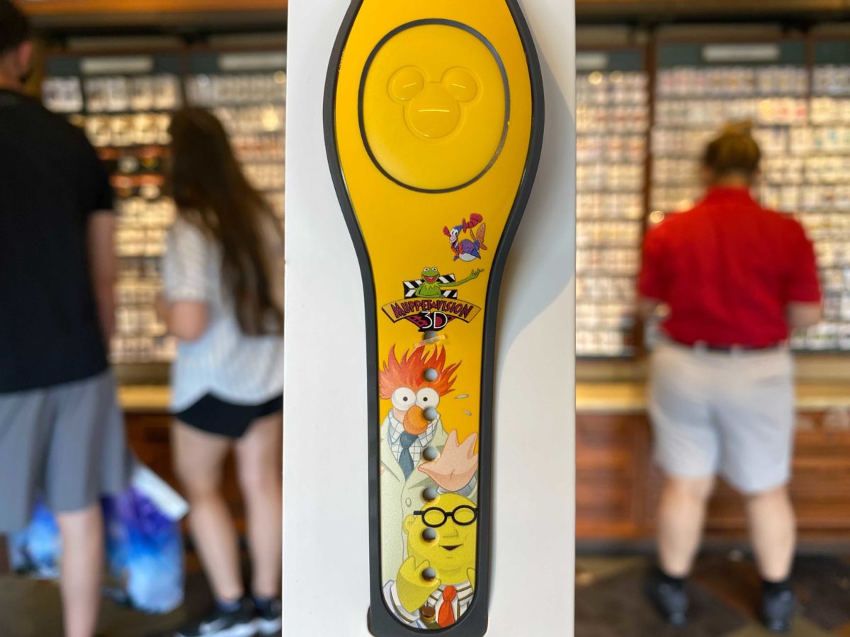 If you want a salute to all attractions, but mostly MuppetVision 3D (okay, only MuppetVision 3D), you’ll want to check out this new MagicBand. Arriving ahead of the attraction’s 30th anniversary on May 16th, we found it at Disney’s Pin Traders at Disney Springs and expect to see it around the parks as well.