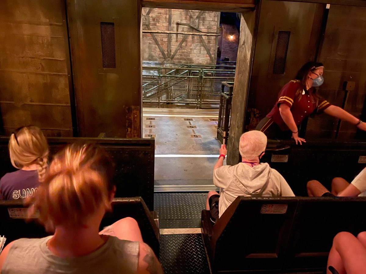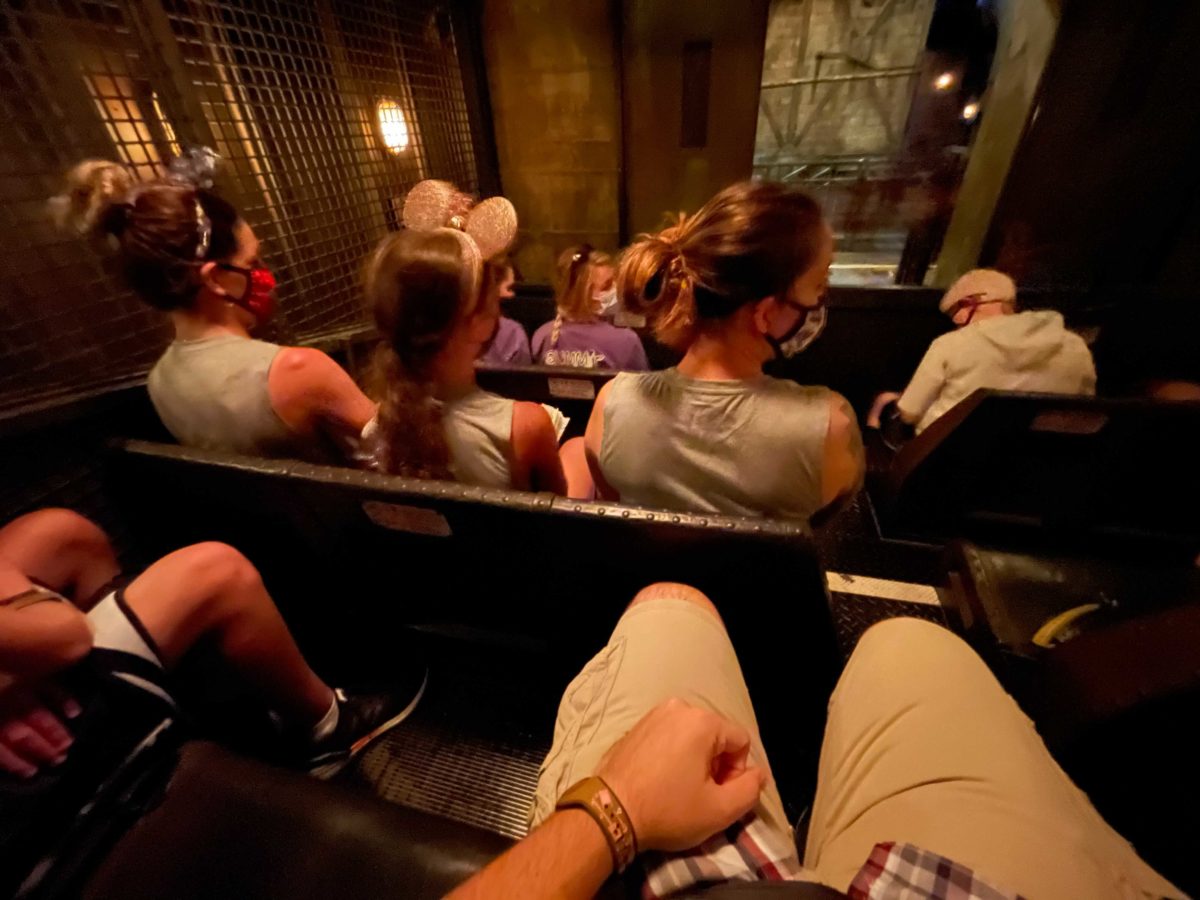 Capacity at the Twilight Zone Tower of Terror increased today. Separate parties are now seated together, with one seat between. All rows are being used. Let’s take a look at how the ride vehicles are being loaded.