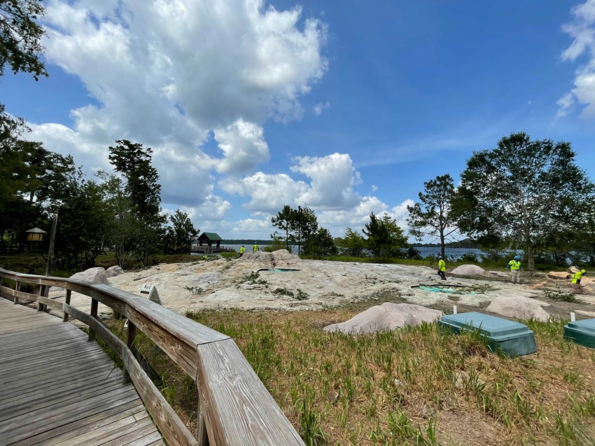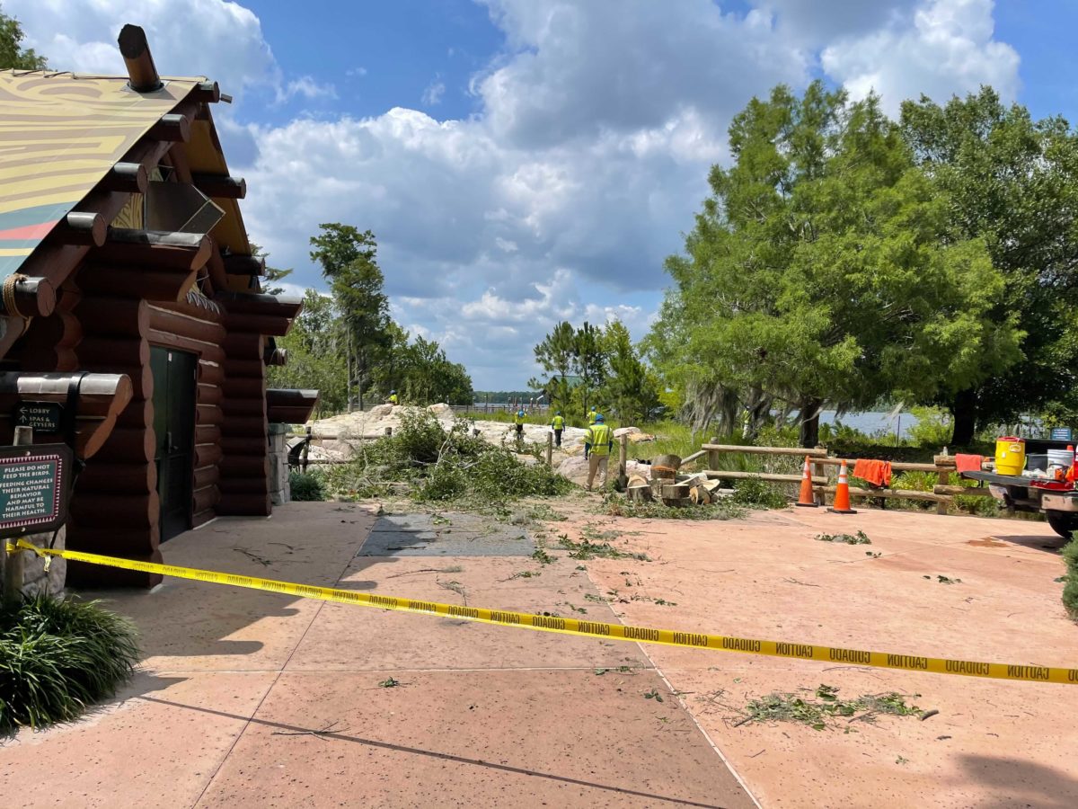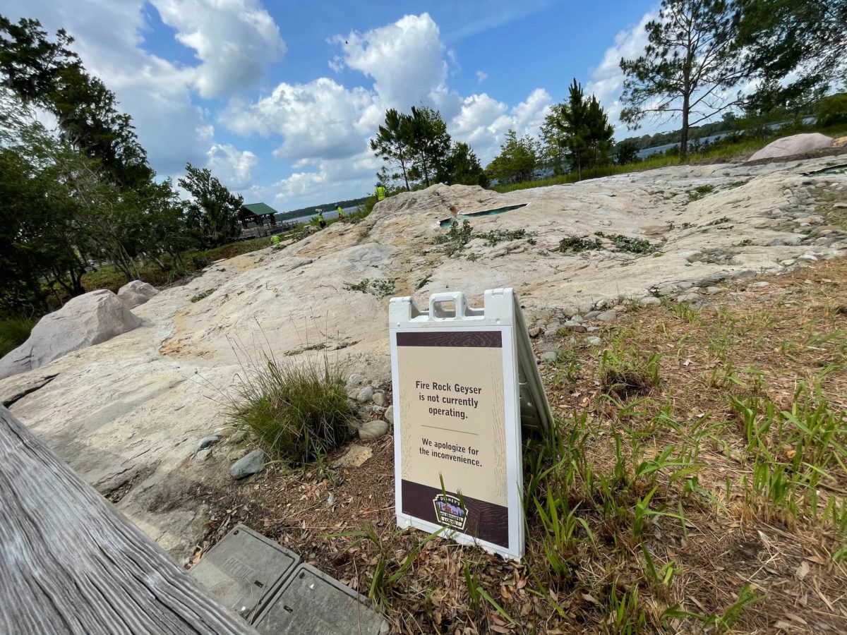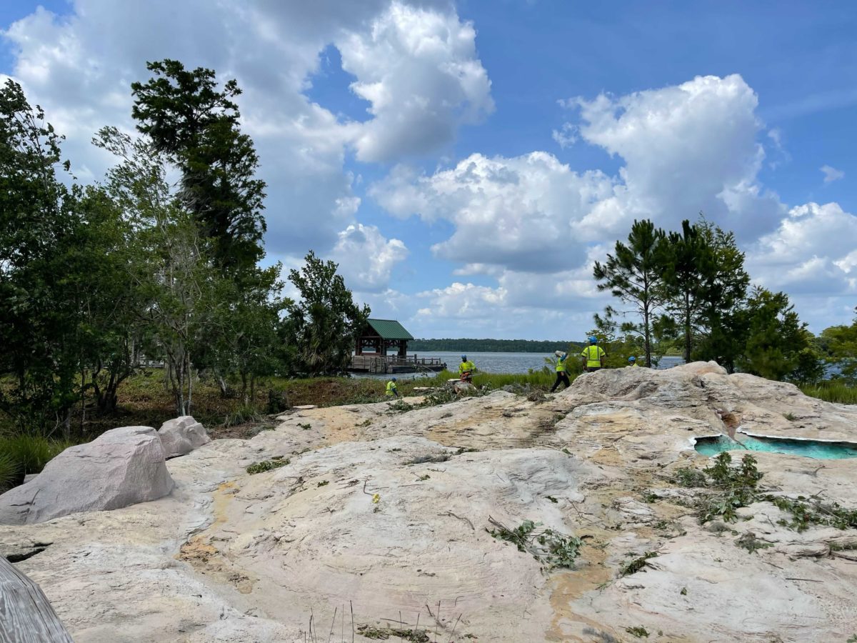 Many trees are being cut down and removed around Fire Rock Geyser at Disney’s Wilderness Lodge.