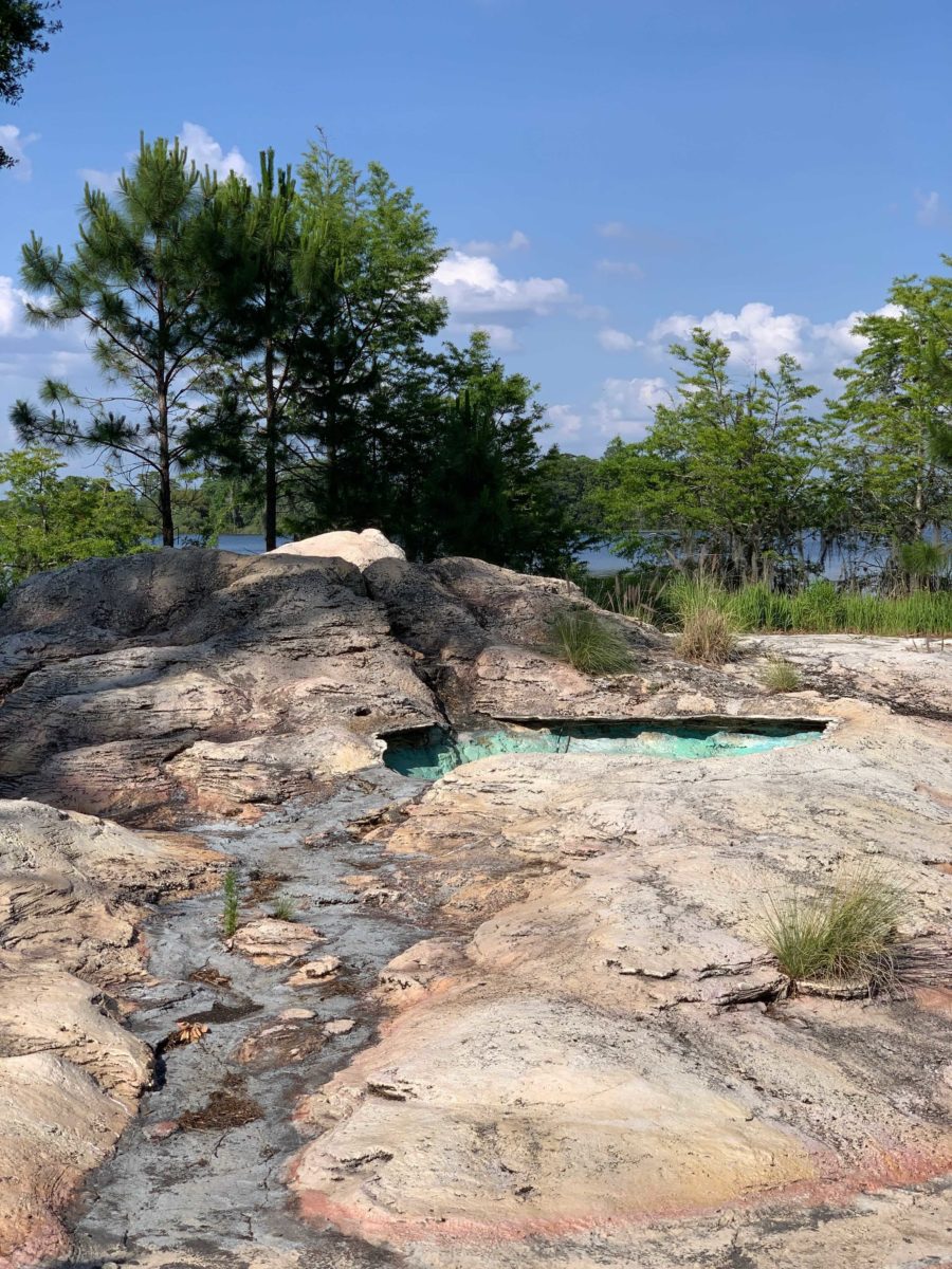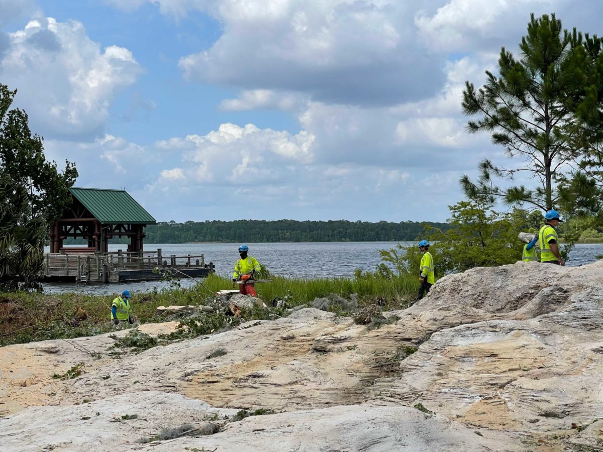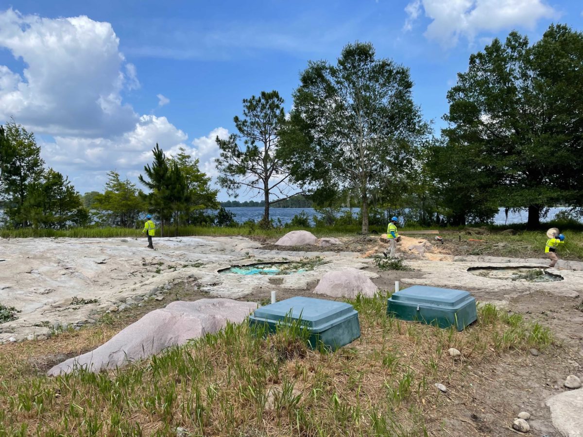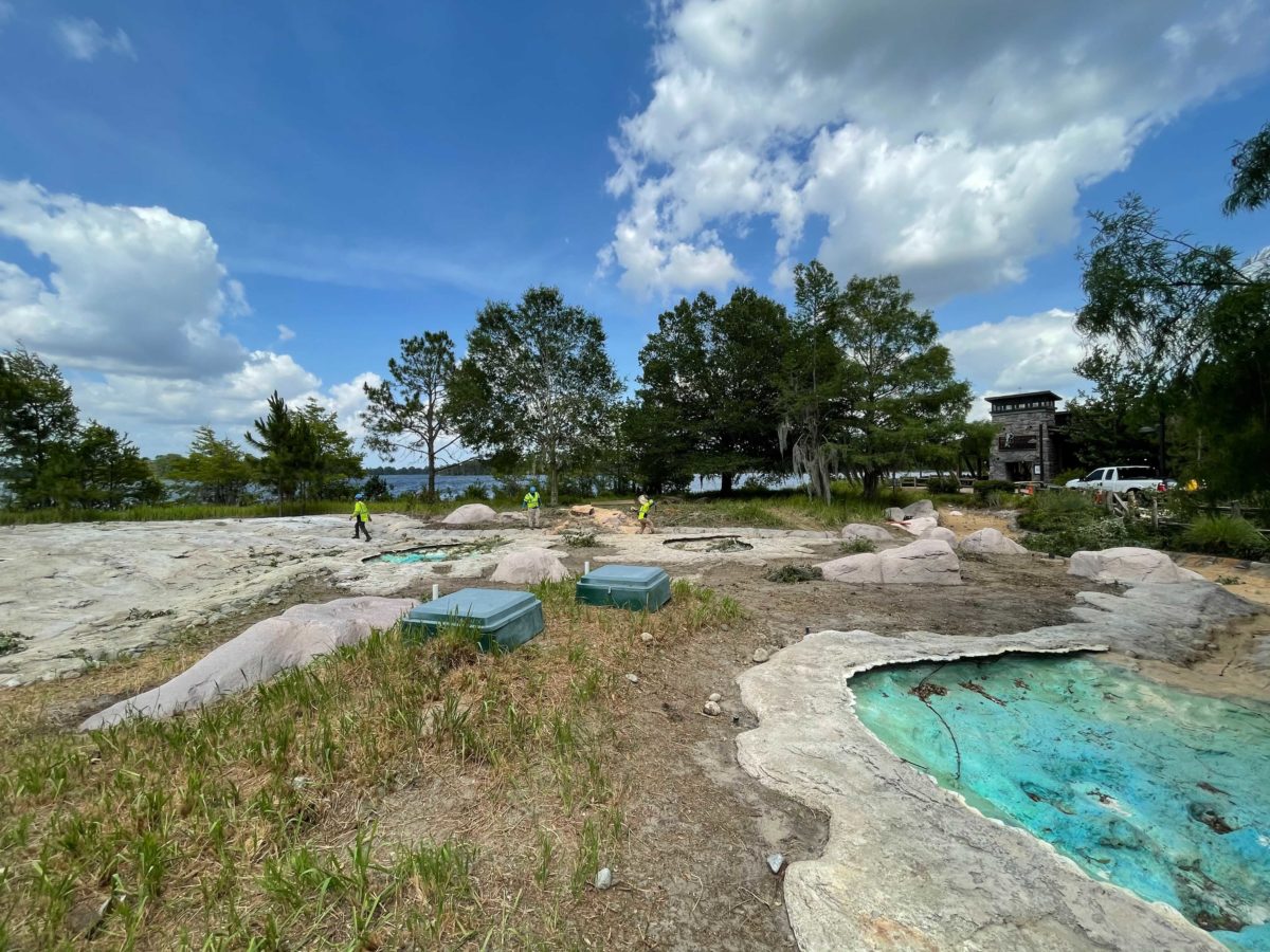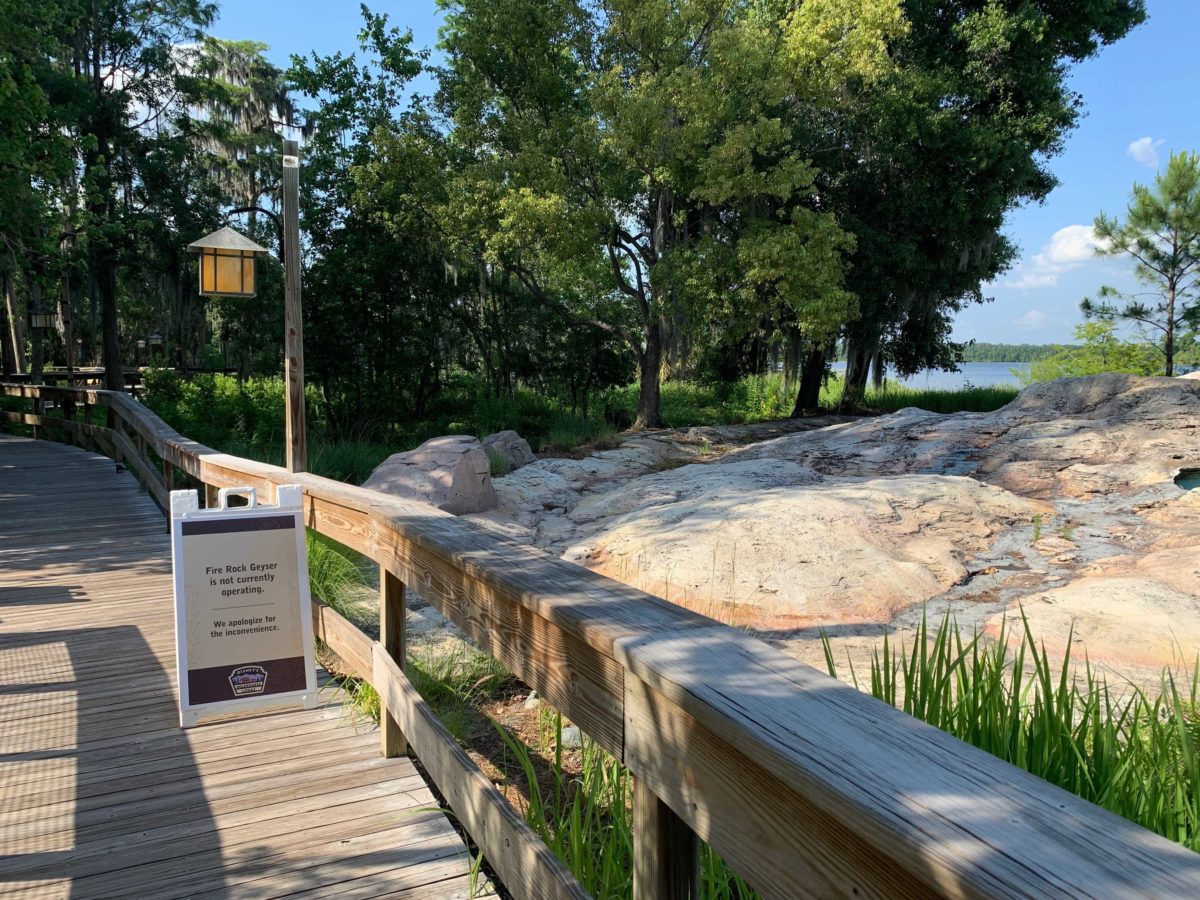 Many trees are being cut down and removed around Fire Rock Geyser at Disney’s Wilderness Lodge.