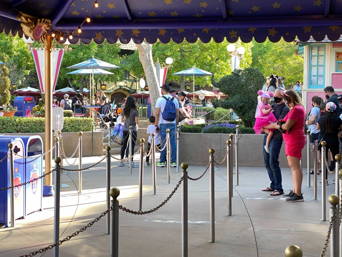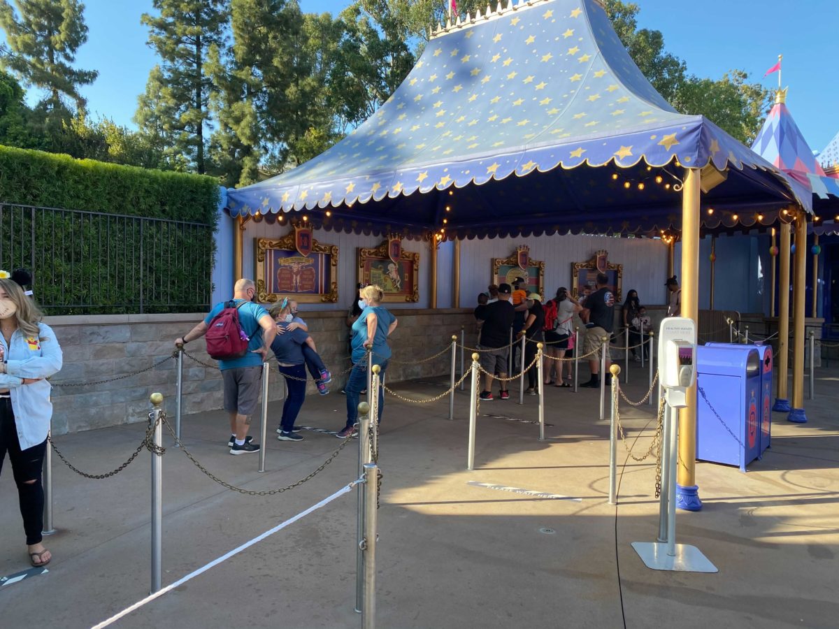 The queue for Casey Jr. Circus Train currently begins in the queue area for Dumbo, because that area currently isn’t in use.