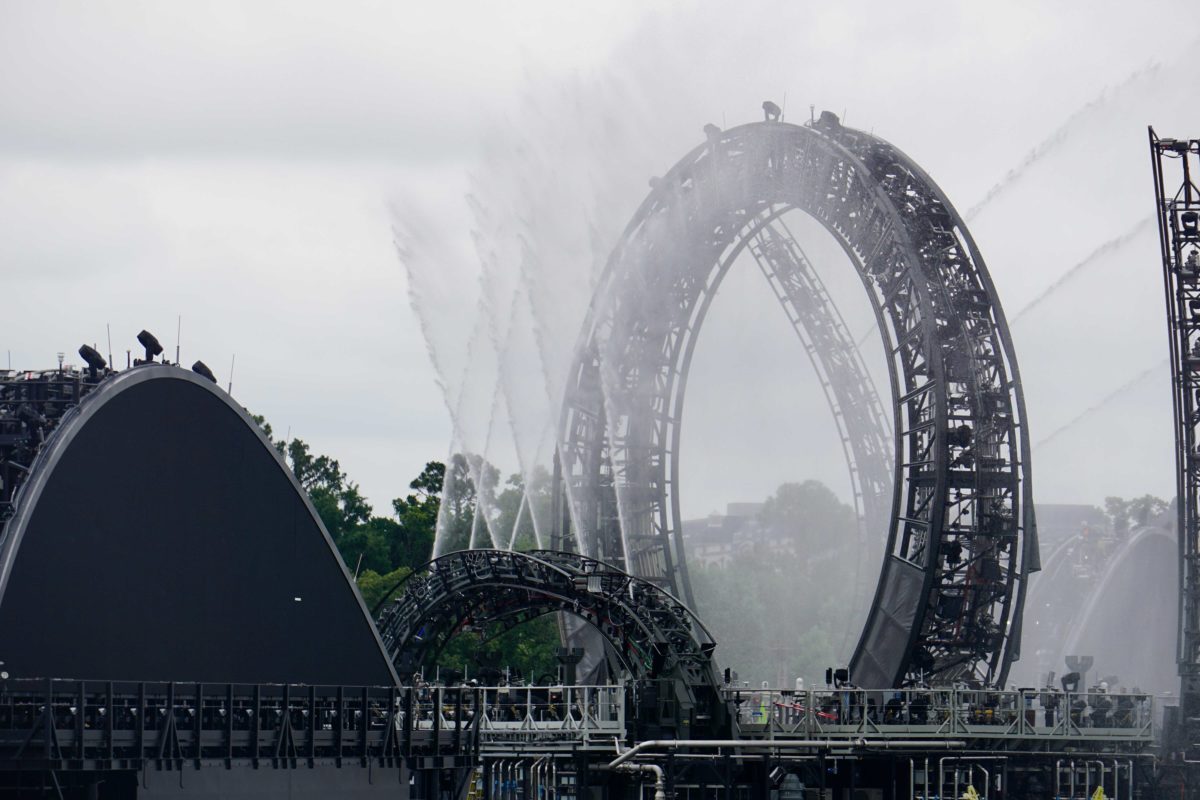 During today’s test, all four semi-circle arms lifted and moved, spraying water through the air.