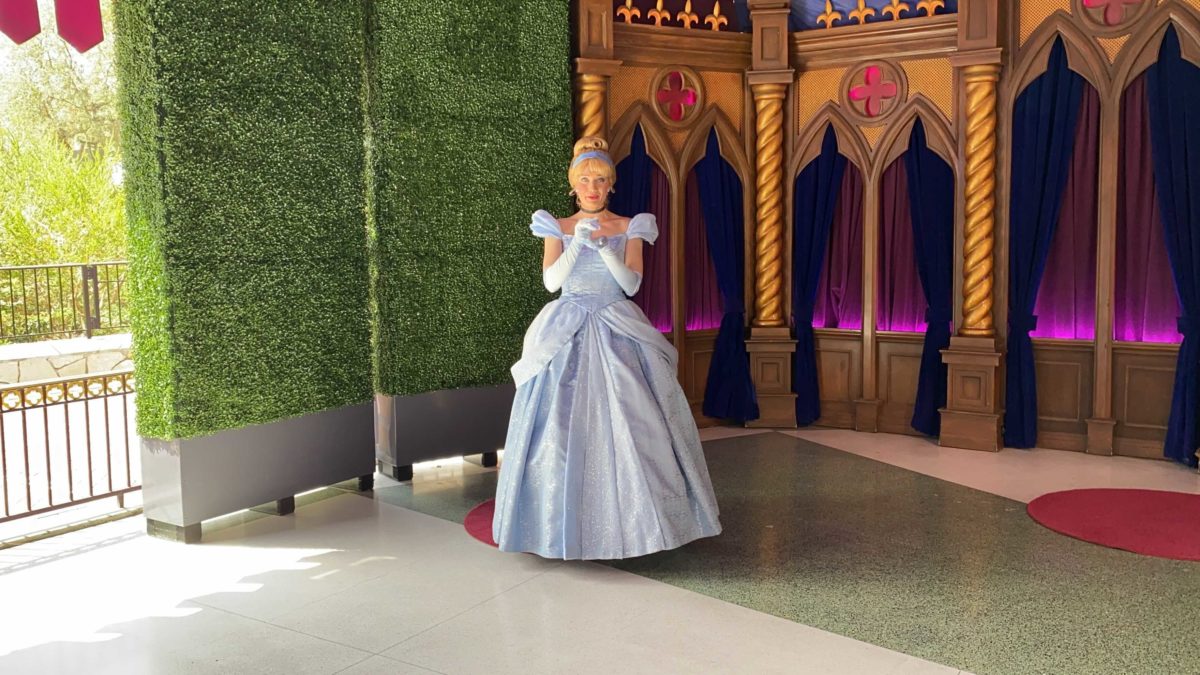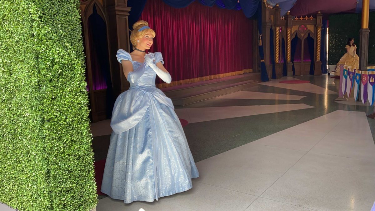 Cinderella Makes a Socially-Distanced Appearance at Princess Fairytale Hall in the Magic Kingdom;