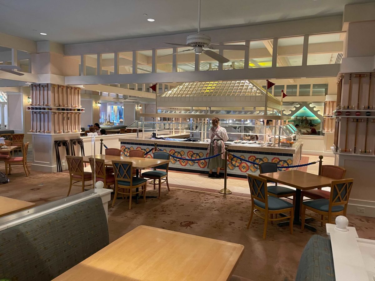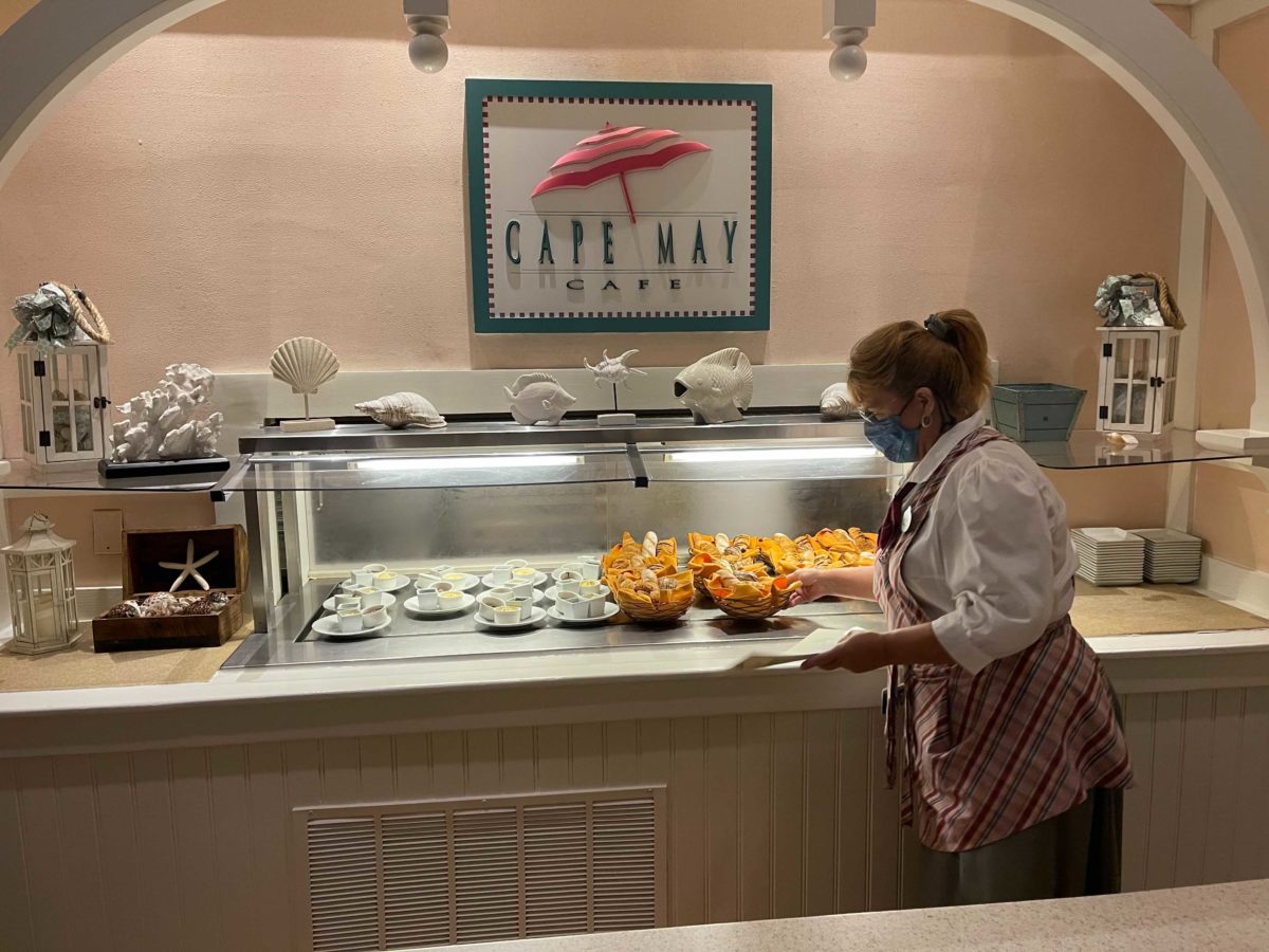 Cape May Cafe at Disney’s Beach Club Resort has reopened, and we arrived bright and early on opening day for breakfast. While Minnie’s Beach Bash Breakfast has not returned, the cafe still promises a delicious all-you-care-to-enjoy meal of breakfast classics. The prix fixe meal is $25 per adult and $14 per child, plus tax and gratuity. Breakfast is served from 7:30am until 11:30am daily.