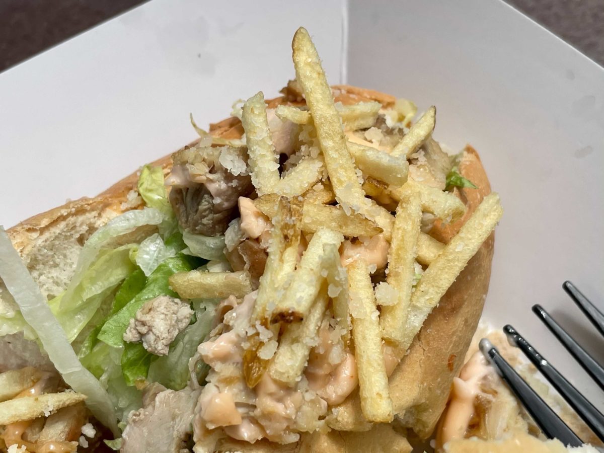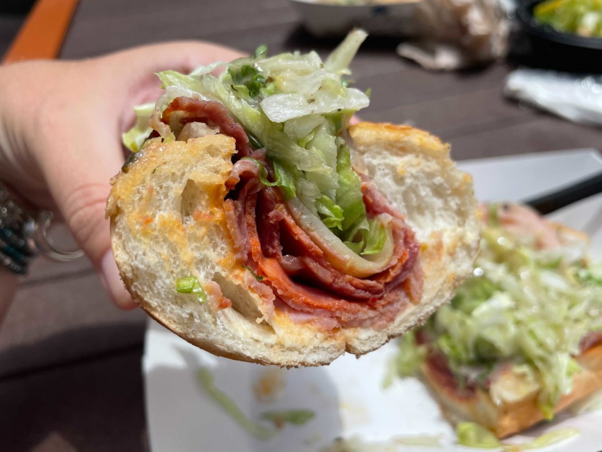 This sandwich was surprisingly good. It was saved by the Italian dressing, which brought all the ingredients together.