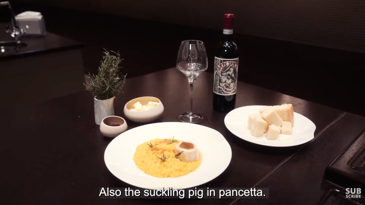 Chef Massimo is shown preparing suckling pig in pancetta.