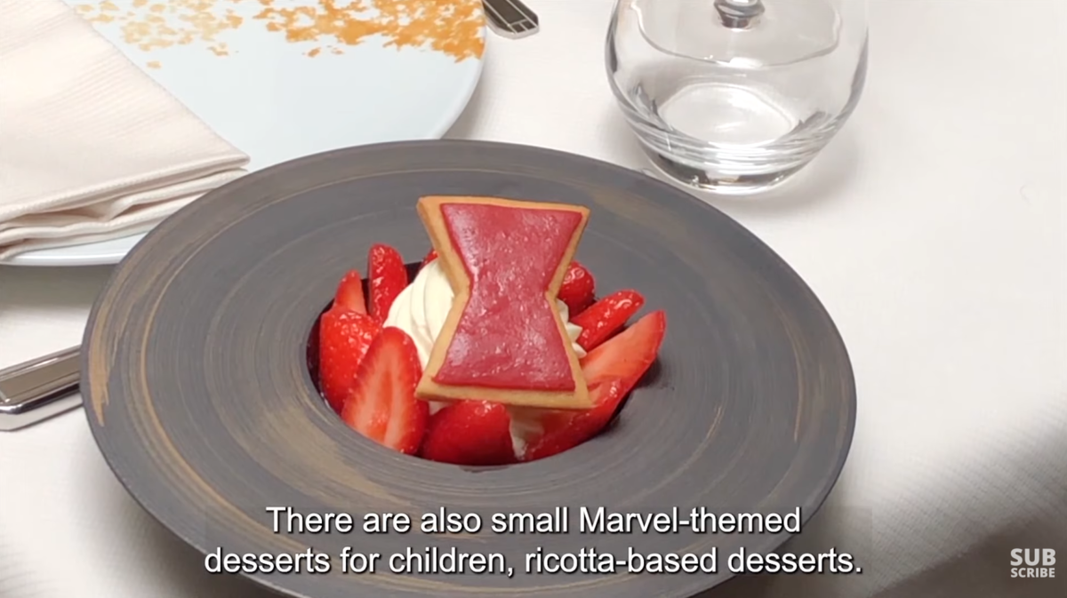 A ricotta-based dessert with strawberries and a Black Widow cookie is available.