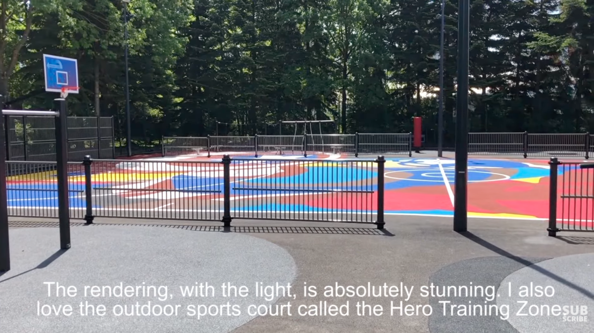 The Hero Training Zone is also a work of art. The court features many iconic Marvel images.