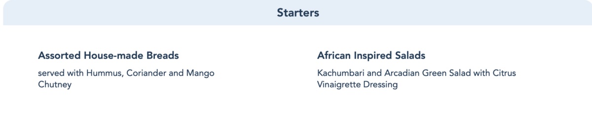 The menu is so bland and boring – basically a retread of Liberty Tree Tavern or Garden Grill. It’s lost all the flavor and African inspiration. Hard pass.